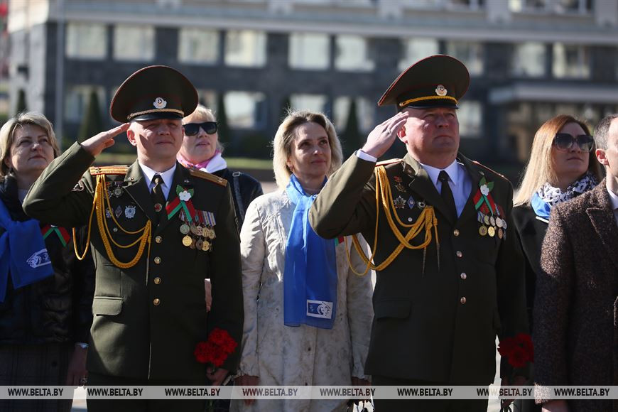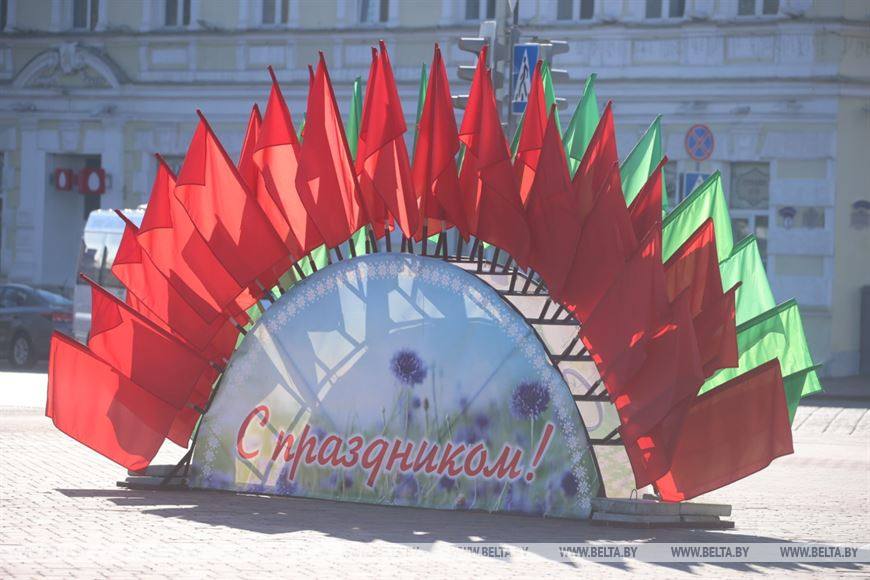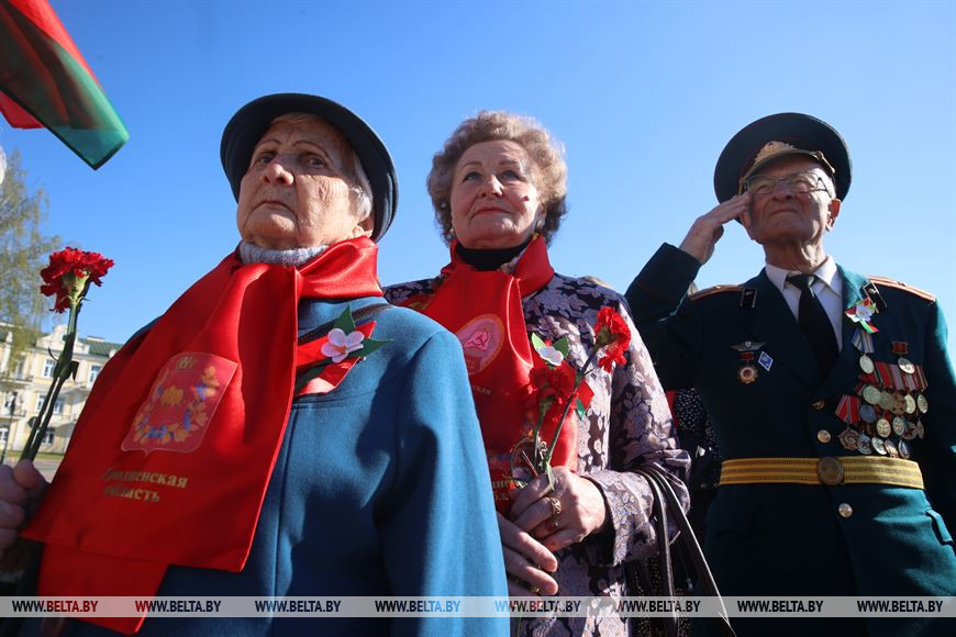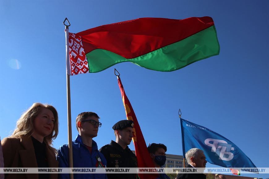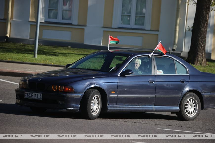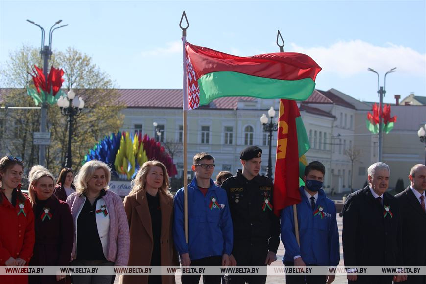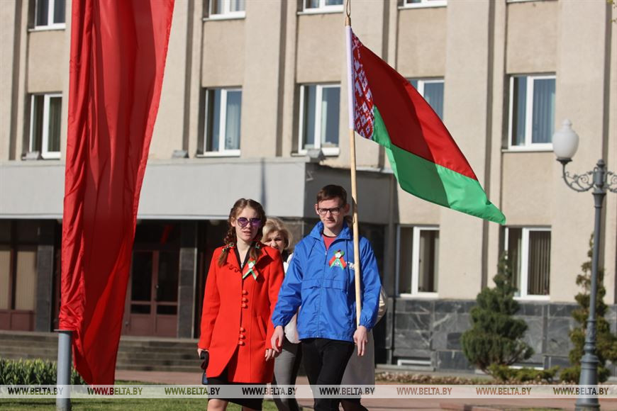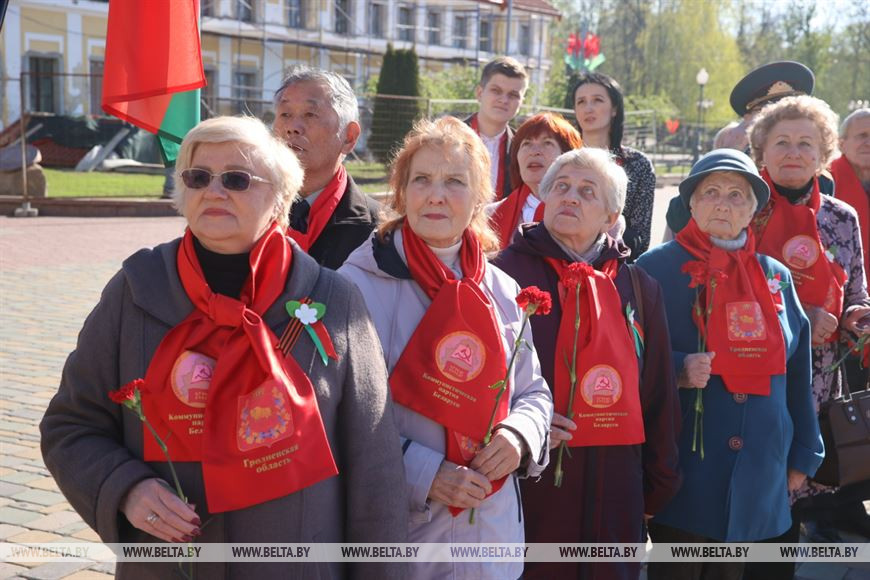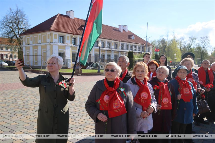9 мая, Минск /Корр. БЕЛТА/. 9 мая 2021 года в рамках празднования Дня Государственного герба и Государственного флага в Гродно проходит акция "Символ единства и славы". Кроме площади Ленина мероприятия прошли еще в 40 точках Гродно.-0-