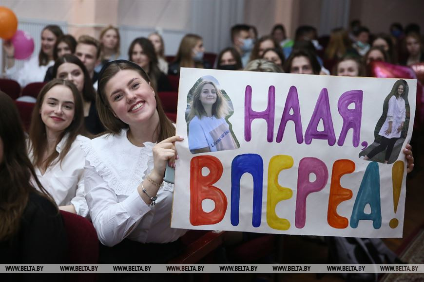 1 апреля, Гродно /Корр. БЕЛТА/. Сегодня в Гродненском государственном медицинском университете прошел конкурс красоты и таланта "Королева Студенчества ГрГМУ 2021". В конкурсе приняли участие 13 студенток. Победительницей конкурса красоты и таланта "Королева Студенчества ГрГМУ 2021" стала студентка 2 курса медико-психологического факультета Ксения Жигадло. Первая вице-мисс - студентка 4 курса лечебного факультета Елизавета Гобрик, вторая вице-мисс - студентка 2 курса лечебного факультета Ия Бурак.-0-