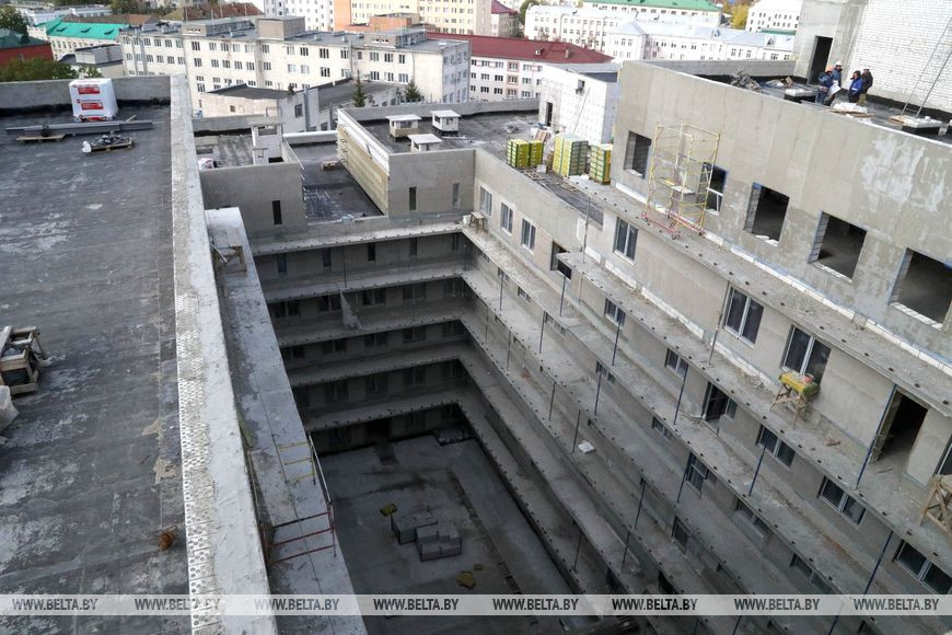 9 октября, Могилев /Корр. БЕЛТА/. На территории Могилевской городской больницы скорой медицинской помощи полным ходом идут строительные работы. Здесь в 2024 году распахнет двери современный восьмиэтажный многопрофильный корпус.-0-