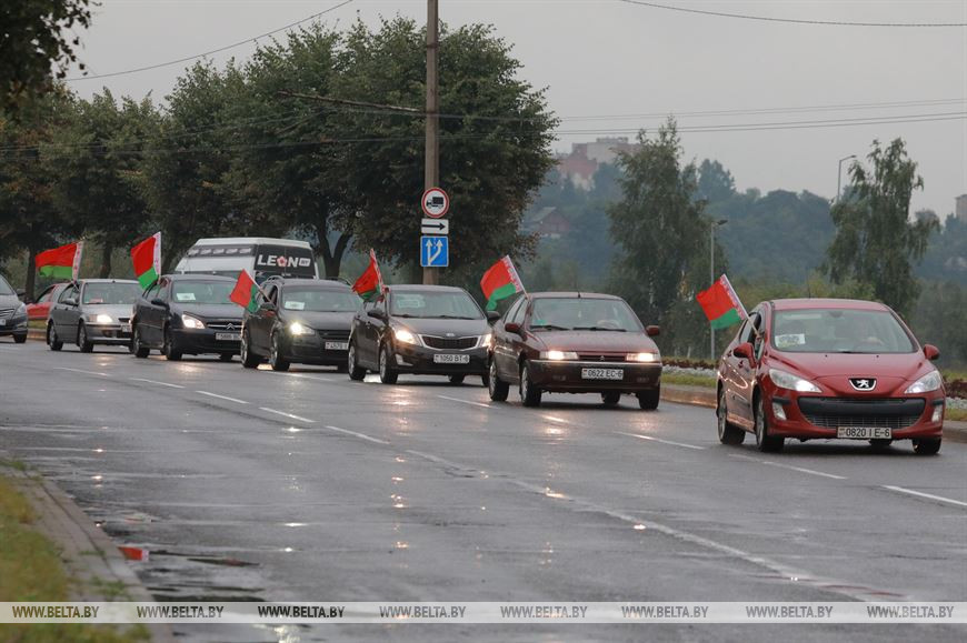 21 августа, Могилев /Корр. БЕЛТА/. В Могилеве участники автопробега проехали по городу в поддержку мира и спокойствия в стране.-0-
