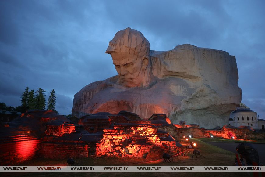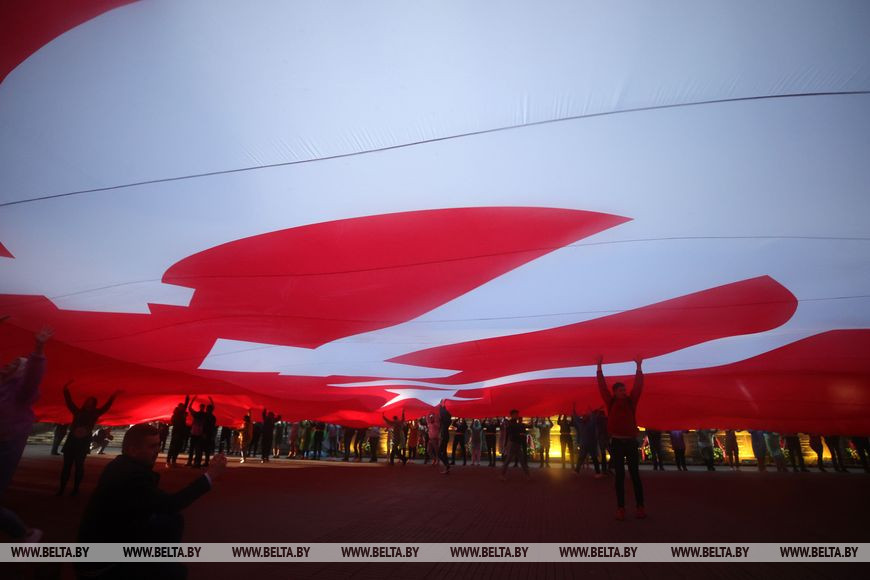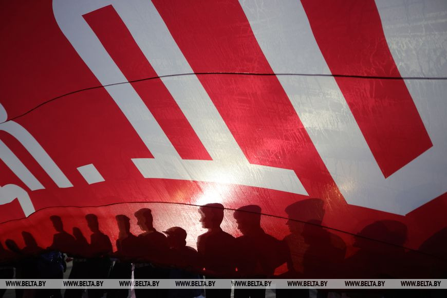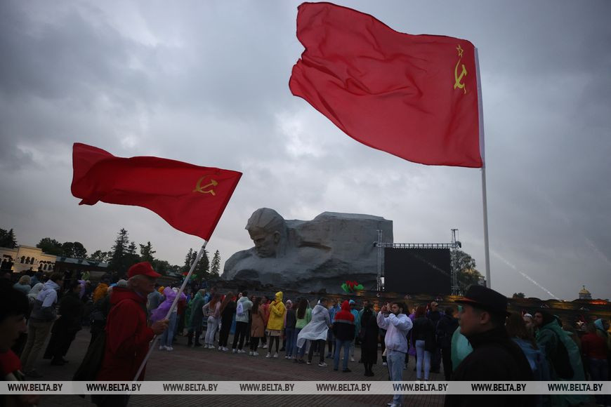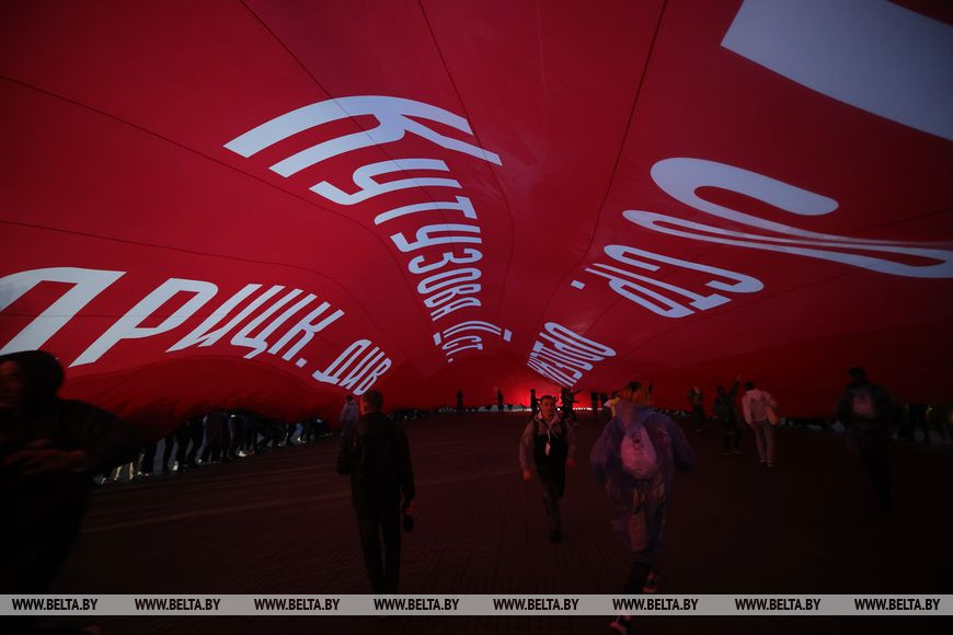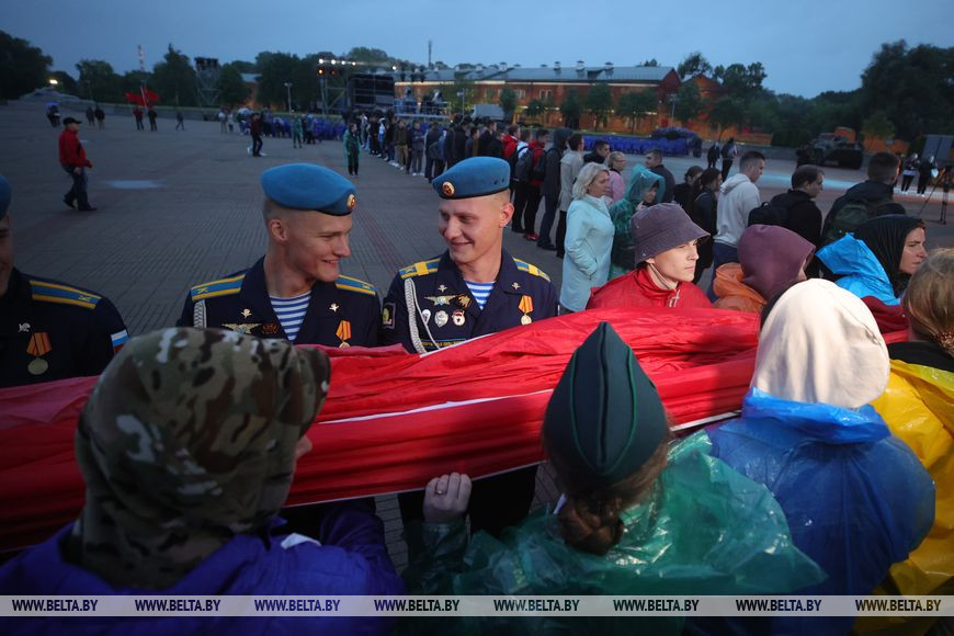 21 июня, Минск /Корр. БЕЛТА/. Участники проекта "Непокоренные" 12 июня на Поклонной горе в Москве развернули самую большую в мире копию Знамени Победы - площадью 22 кв.м и весом 250 кг. За 10 дней полотнище вместе с участниками проекта преодолело 1500 км, побывало в 11 городах воинской славы, а 21 июня было торжественно передано в музей обороны Брестской крепости.-0-