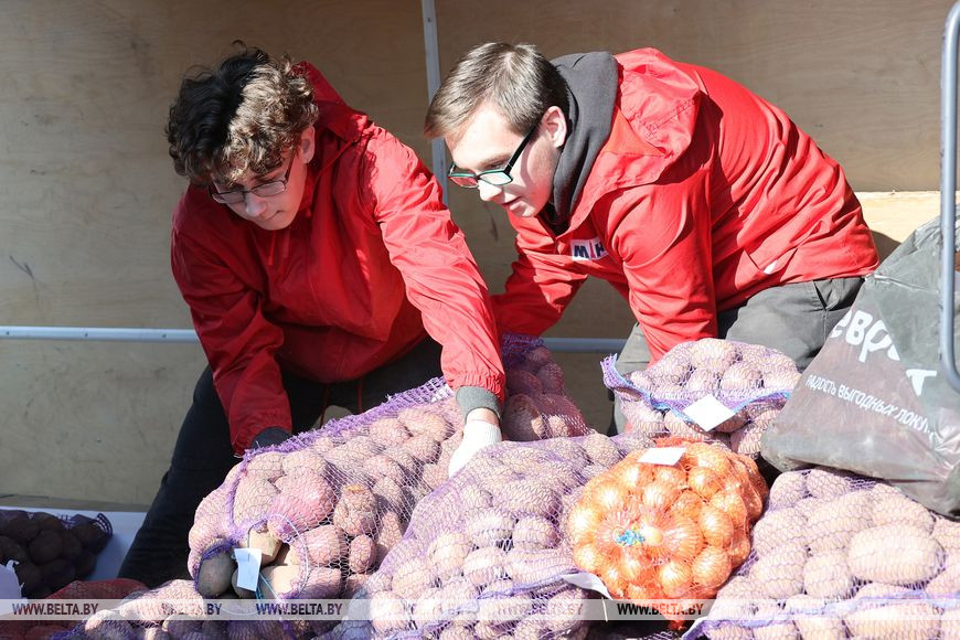 9 октября, Минск /Корр. БЕЛТА/. В парке Дружбы народов продолжила работу сельскохозяйственная ярмарка, в рамках которой была организована доставка домой приобретенной сельхозпродукции инвалидам и ветеранам Великой Отечественной войны волонтерами ОО "БРСМ", студентами 1-го и 2-го курсов Минского торгового колледжа в рамках благотворительной акции "Пожилым от молодежи".-0-