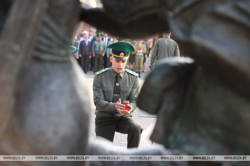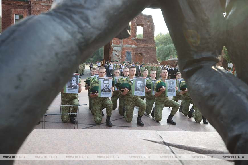 У скульптурной композиции "Героям границы" в мемориальном комплексе "Брестская крепость-герой" был дан старт патриотической акции Института пограничной службы "Боевой расчет"