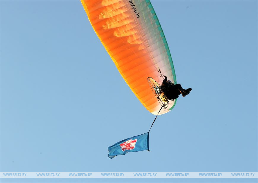 Заместитель председателя профсоюзного комитета БМЗ Вячеслав Липаткин во время приветствия участников фестиваля