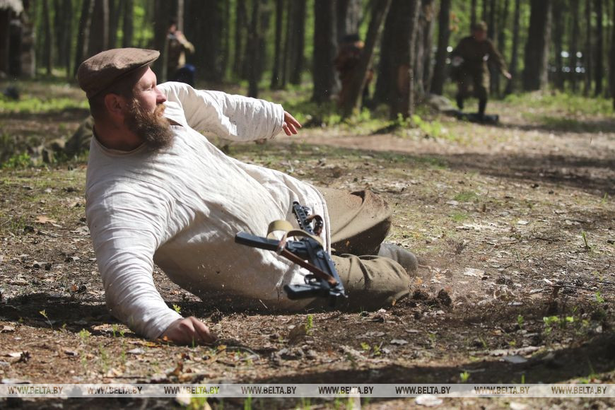В партизанском лагере для детей были организованы интерактивные площадки и экскурсия. Ключевым моментом стала реконструкция нападения немецко-фашистских захватчиков на партизанский лагерь, которую воссоздали участники военно-исторических клубов "Гарнизон", "Западный рубеж" и "Полеский солдат".