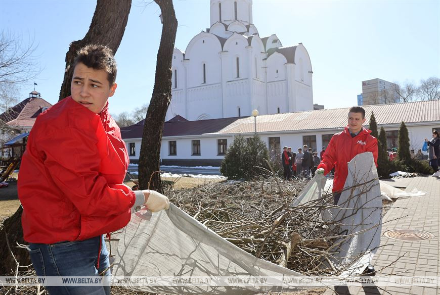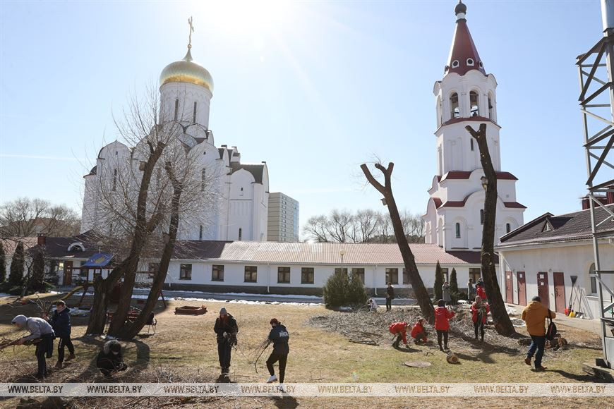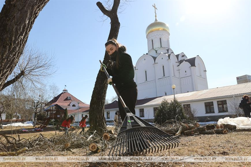 24 марта, Минск /Корр. БЕЛТА/. Во время республиканской благотворительной межконфессиональной акции "Восстановление святынь Беларуси. Нас объединяет история и вера" волонтеры движения "Доброе сердце" Минской городской организации БРСМ благоустроили территорию у храма Покрова Пресвятой Богородицы.-0-