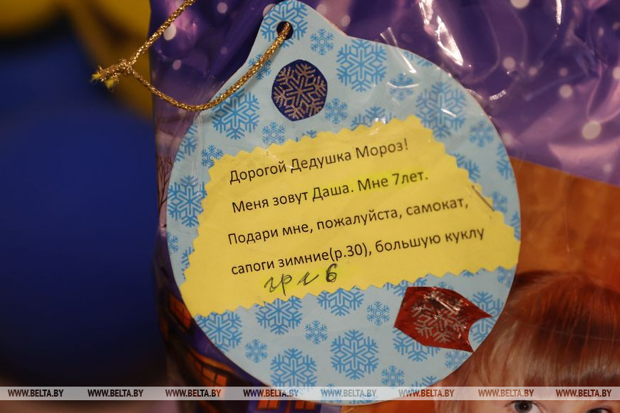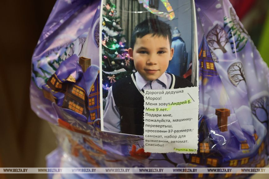 4 января, Витебск /Корр. БЕЛТА/. Волонтеры Витебской городской организации БОКК 12-30 декабря провели масштабный традиционный благотворительный проект "Новогодняя елка желаний". В крупнейших торговых объектах областного центра были установлены елки, на которых вместо игрушек разместили фотографии воспитанников детского дома с их пожеланиями. Любой человек мог стать волшебником, купив подарок, указанный в пожелании. Именные подарки воспитанникам Витебского детского дома вручили 4 января.-0-