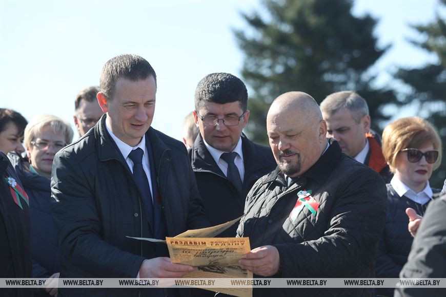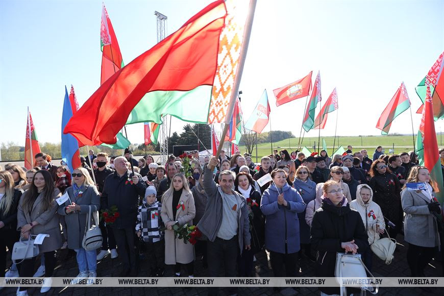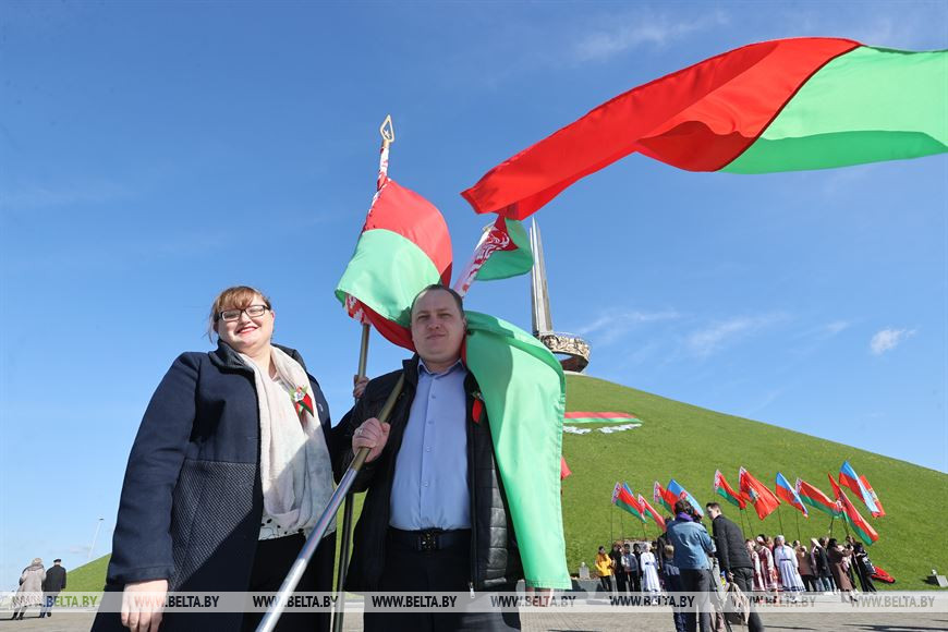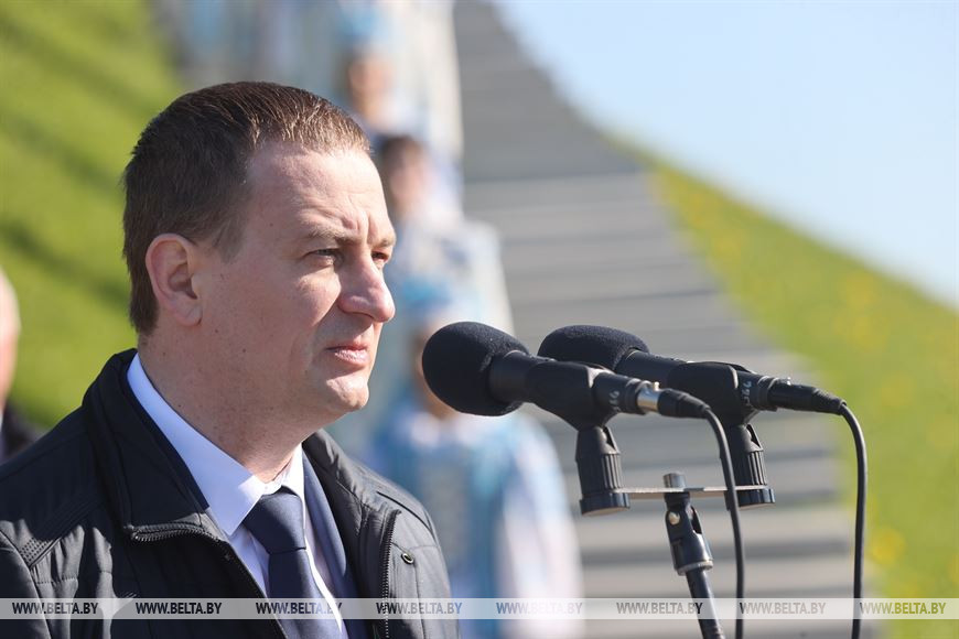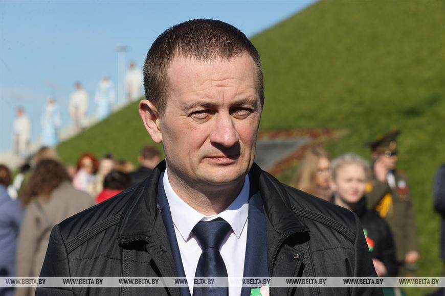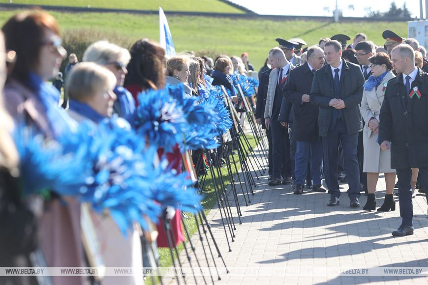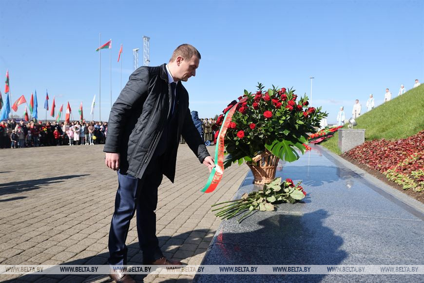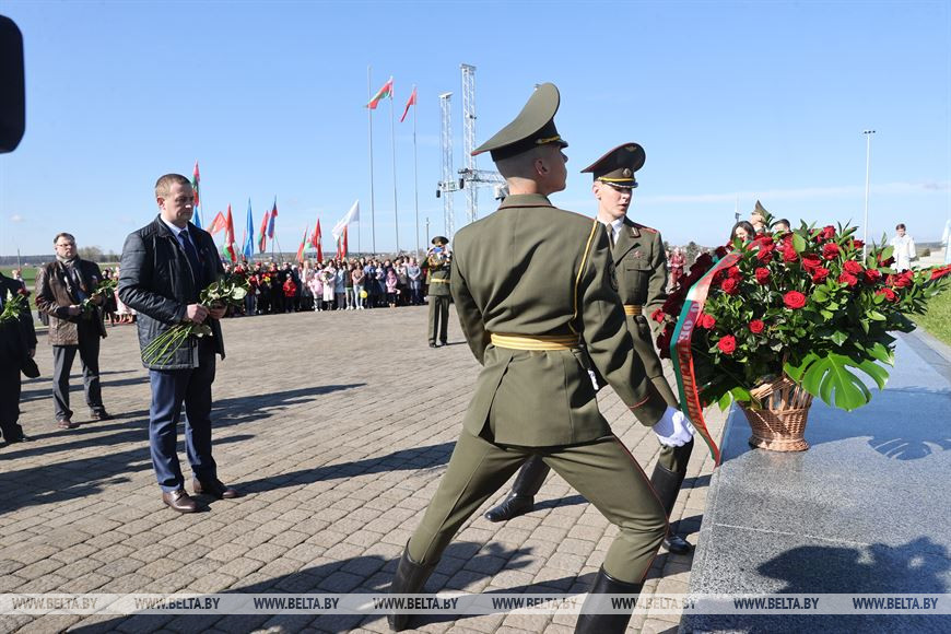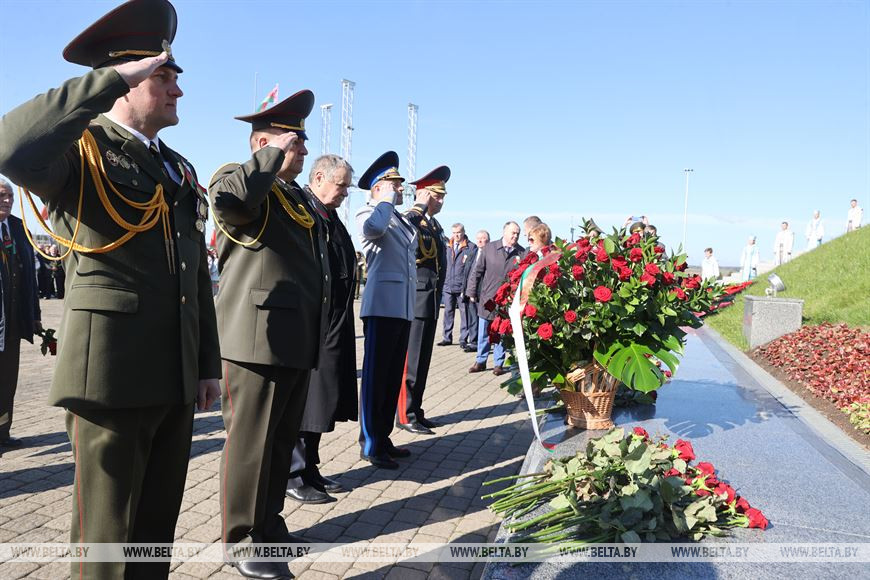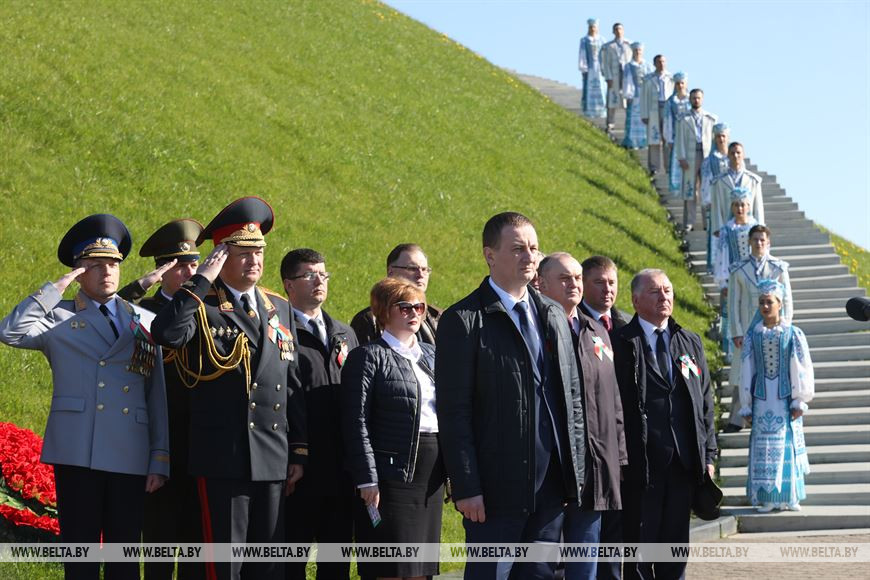 9 мая, Минск /Корр. БЕЛТА/. В мемориальном комплексе "Курган Славы" состоялось областное торжественное мероприятие, посвященное 76-летию Победы советского народа в Великой Отечественной войне, Дню Государственного герба Республики Беларусь и Государственного флага Республики Беларусь. Председатель Миноблисполкома Александр Турчин возложил цветы к мемориальному комплексу "Курган Славы".-0-