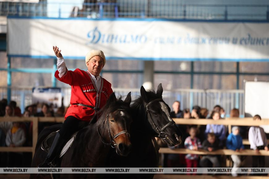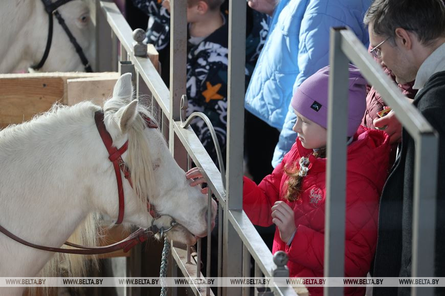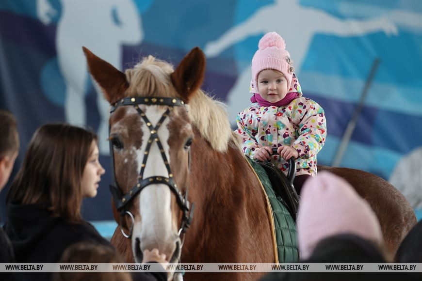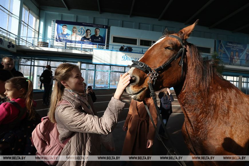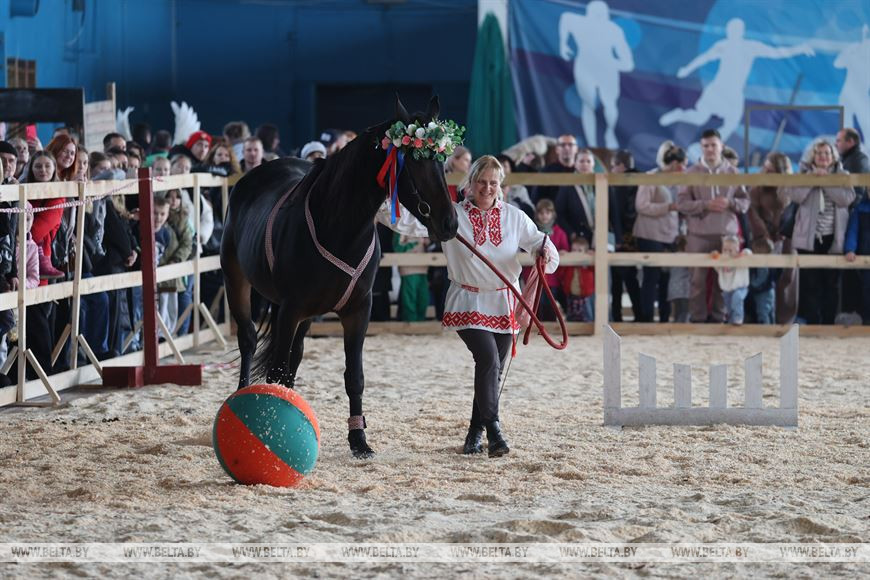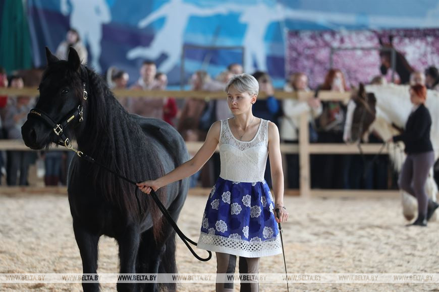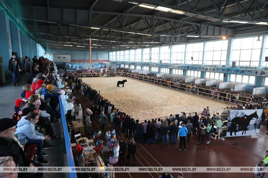 4 ноября, Минск /Корр. БЕЛТА/. В праздничные выходные 4-7 ноября в крытом легкоатлетическом спорткомплексе в Минске проходит международная выставка-шоу породистых лошадей "Осень-2023". Вниманию зрителей представлено множество породистых лошадей от ведущих коннозаводчиков. Лучшие представители пород поборются за титул чемпиона среди тяжеловозов, упряжных, верховых пород.-0-
