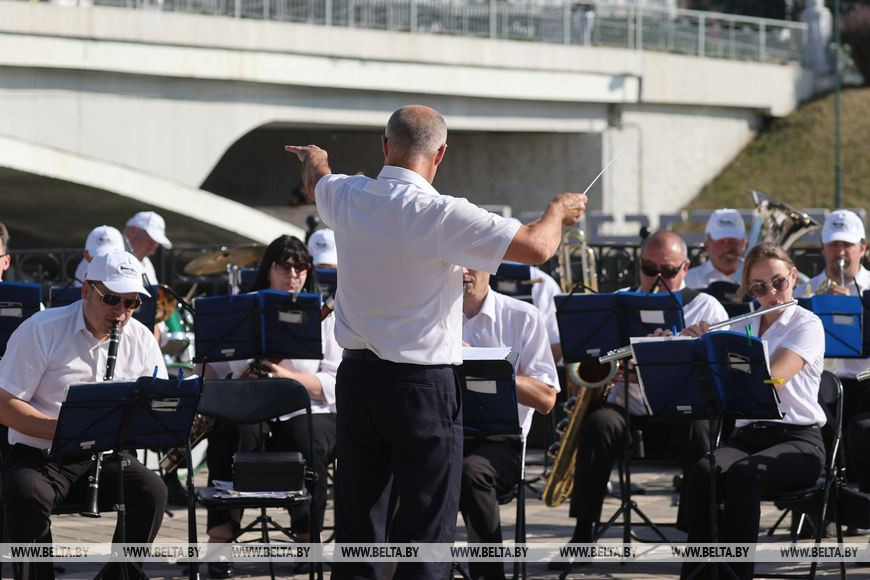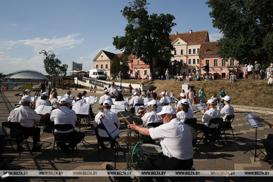 15 июля, Минск /Корр. БЕЛТА/. В рамках музыкальной гостиной в Троицком предместье на набережной Свислочи 15 июля выступил концертный оркестр "Немига" с программой произведений популярной классики. Концерт продолжил череду традиционных субботних событий музыкально-туристического сезона - 2023.-0-