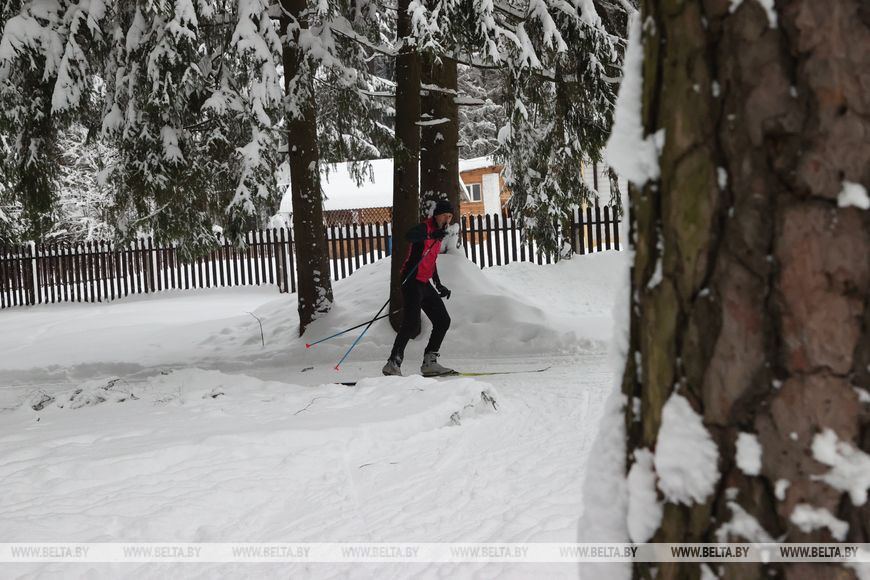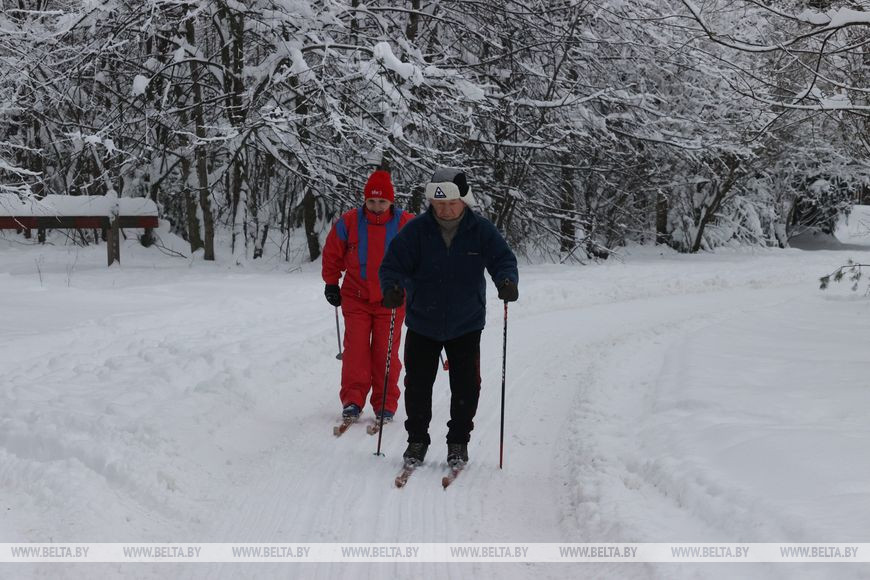 4 декабря, Могилев/Корр. БЕЛТА/. В Могилеве наступила настоящая зима. Горожане активно отдыхают в Печерском лесопарке.-0-