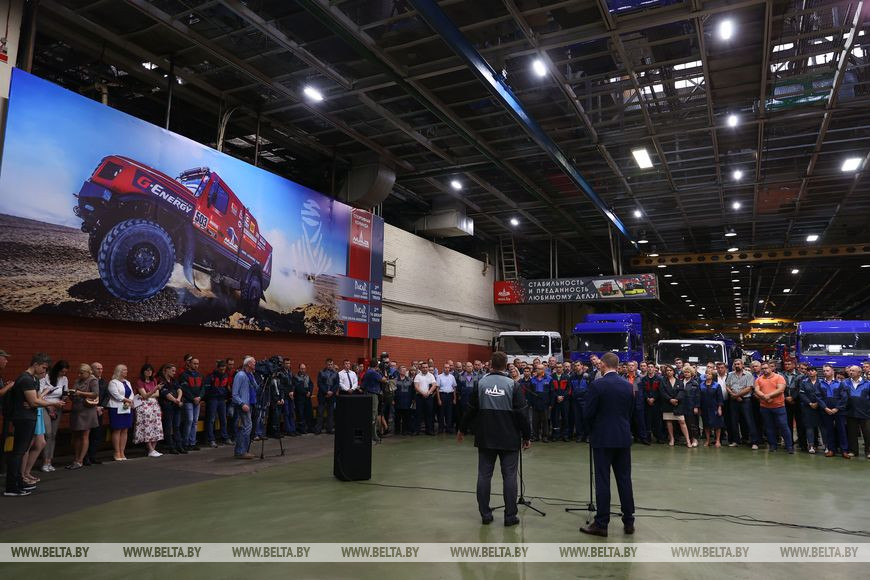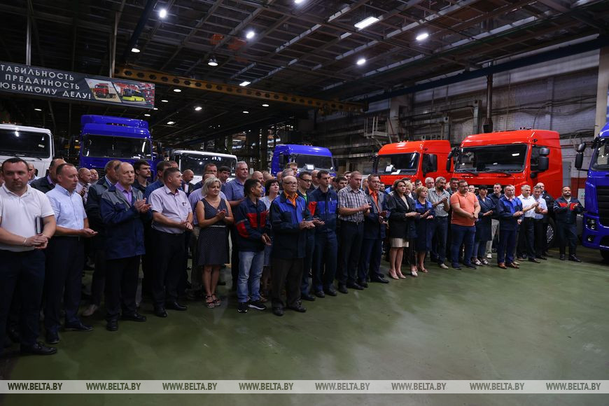 На встрече с коллективом обсуждалась также работа завода по итогам первого полугодия. МАЗ в январе - июне собрал 5 тыс. 300 автомобилей. Экспорт составил порядка $170 млн. Средняя зарплата на предприятии в первом полугодии - Br1,2 тыс.-0-