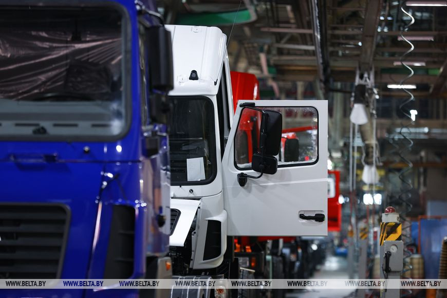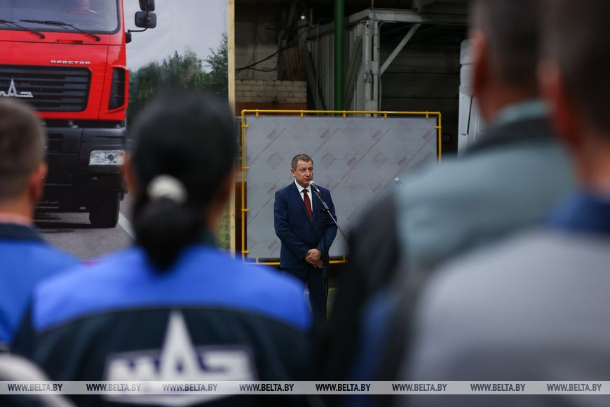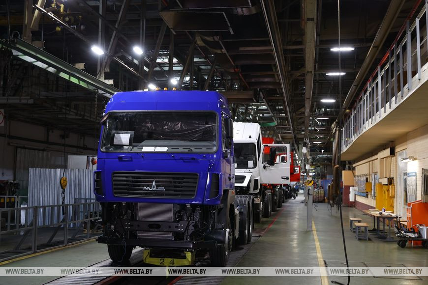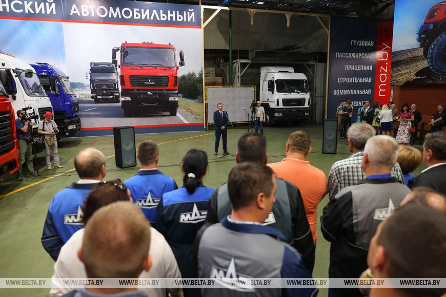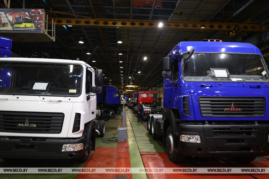 "МАЗ работает очень напряженно. По автобусному производству у нас три смены. Очень много заказов, особенно экспортных (Россия, Украина). Конвейер работает в две смены, никаких волнений в коллективе нет, работаем нормально, штатно", - сказал Валерий Иванкович.