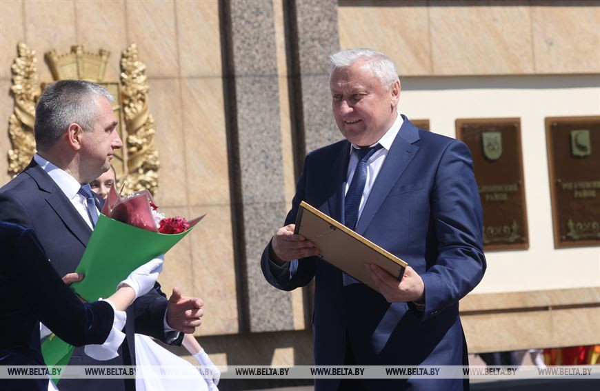 "С волнением и гордостью за весь коллектив получаю сегодняшнюю награду. А работаем мы в удовольствие и на благо страны благодаря условиям, которые созданы в Беларуси Президентом. Хочу заверить, что коллектив "Мозырьсоли" будет и в дальнейшем преданно трудиться не ради наград, но во славу своей страны", - заключил генеральный директор.-0-