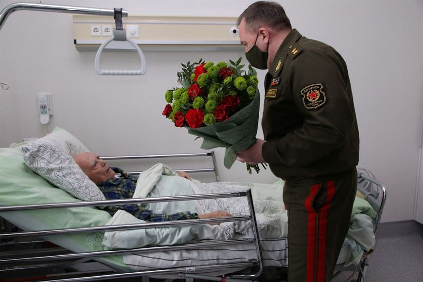 Руководитель оборонного ведомства генерал-лейтенант Виктор Хренин приехал в Республиканский клинический медицинский центр Управления делами Президента, чтобы поздравить с Днем Победы Василия Мичурина, который сейчас находится на лечении. Концерт для героя под окнами медицинского центра дал образцово-показательный оркестр Вооруженных Сил, артисты Академического ансамбля песни и танца Вооруженных Сил, поздравить ветерана приехали курсанты и офицеры. Импровизированный концерт прошел и под окнами дома, в котором живет Иван Кустов. Герой и его супруга поприветствовали армейских артистов и музыкантов из окна и приняли поздравления от министра обороны.