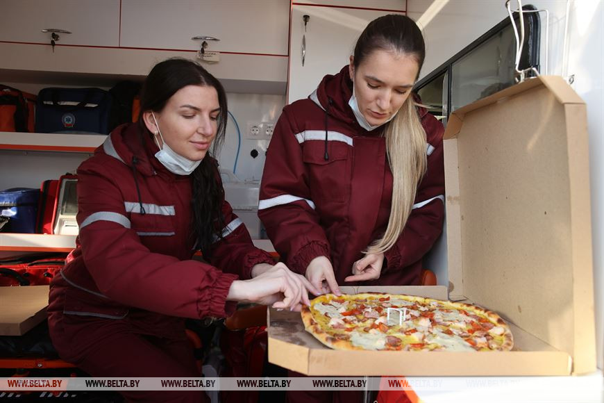 Сегодня медиков поддержала одна из компаний общественного питания Гродно. На подстанцию в обеденное время привезли пиццу для сотрудников.