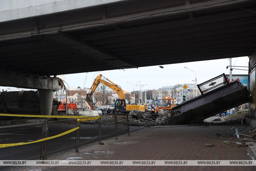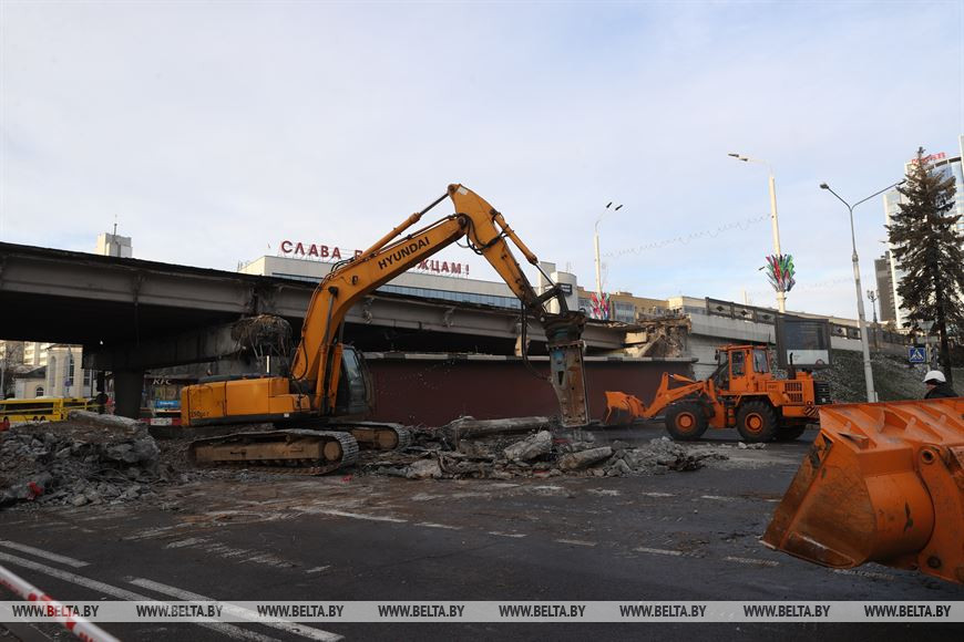 "Планируется около недели отвести на демонтаж путепровода и параллельное с этим проектирование строительства. Мы сегодня пересматриваем все объекты в Минске", - сказал Денис Глинский.-0-