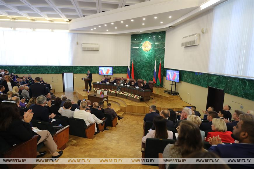 Всего в ХІІ форуме городов-побратимов принимают участие более 200 человек - это делегаты из 24 городов Беларуси и 67 городов России. Работа организована по четырем секциям: экономическое и деловое сотрудничество, социальная политика, народная дипломатия и первая молодежная встреча представителей городов-побратимов Беларуси и России.-0-