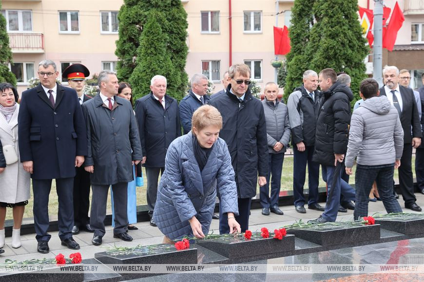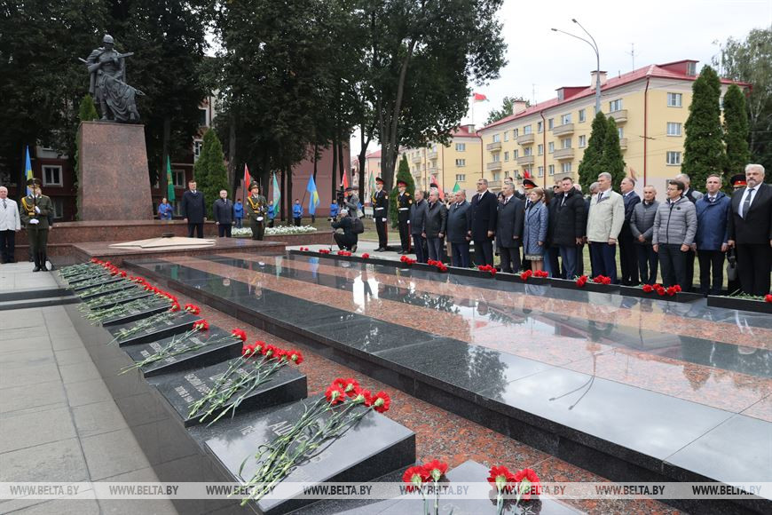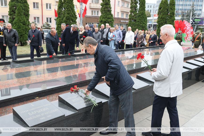 Официальные делегации, прибывшие поздравить город над Сожем с юбилеем, вместе с руководством города и области отдали дань уважения и памяти освободителям. Председатель Гомельского облисполкома Иван Крупко, помощник Президента - инспектор по Гомельской области Николай Рогащук и председатель Гомельского горисполкома Петр Кириченко возложили цветы на мраморные плиты.