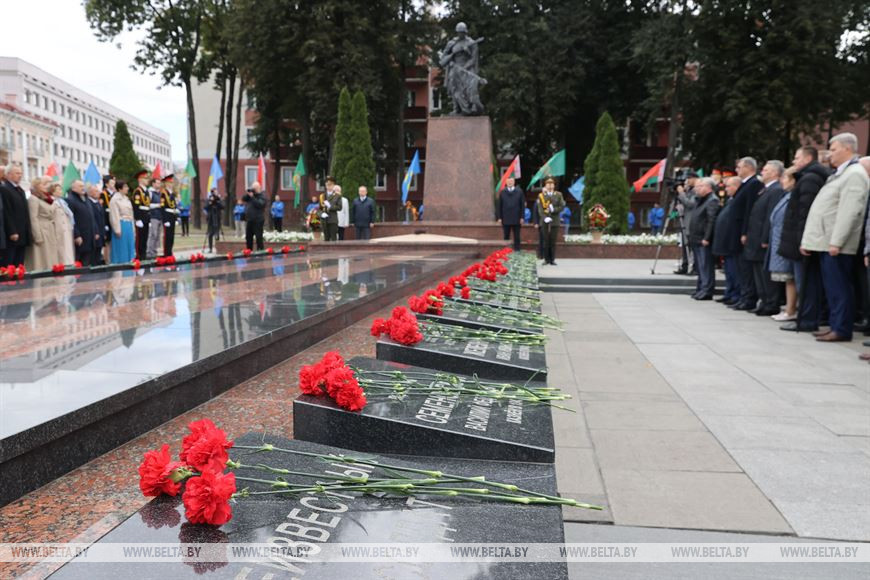 10 сентября, Гомель /Корр. БЕЛТА/. В Гомеле жители и гости города возложили цветы к мемориалу у Вечного огня на площади Труда в областном центре, передает корреспондент БЕЛТА.