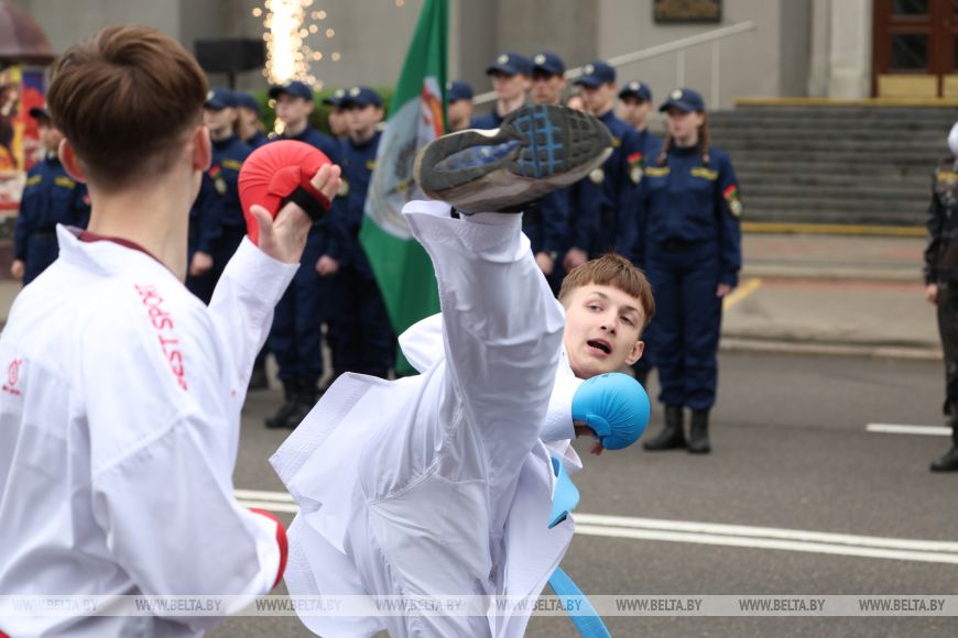 Ярким событием и без того насыщенного праздника стало показательное выступление. Началось все с исторической реконструкции, в которой был показан эпизод противостояния милиции времен Великой Отечественной войны бандитам, которые напали на инкассаторов. Далее свое профессиональное мастерство продемонстрировали девушки-регулировщицы и мотоциклисты УГАИ ГУВД Минска. Следующими приемы рукопашного боя показали бойцы столичного ОМОН.