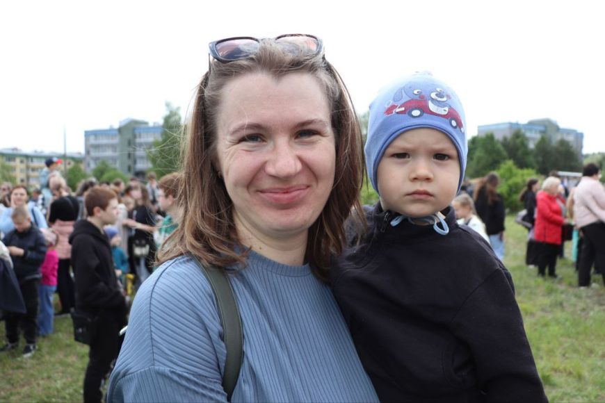 Слонимчанка Юлия пришла на мероприятие с маленьким сыном Федей. "Я педагог Слонимской детской школы искусств, - рассказала она. - Сегодня будут выступать воспитанники моих коллег, хочется их поддержать. Считаю, что детей нужно приучать принимать активное участие в общественной жизни, потому мы пришли вместе. Сегодня здесь многолюдно, интересно. Очень здорово, что проводятся такие акции." Эстафету "Марша Победы" у Слонима принимает Кобрин, далее марш пройдет в Славгороде и Смолевичах.-0-