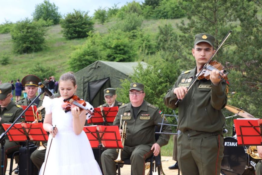 Овациями встречали выступление духового оркестра 11-й механизированной бригады, который исполнил знаменитые композиции военных лет. Хорошее настроение окружающим также дарили артисты Слонимского районного центра культуры, детской школы искусств, творческих коллективов предприятий и организаций."Для города это значимое событие. Символично, что в год 80-летия Великой Победы указом Президента Слоним удостоен вымпела "За мужнасць і стойкасць у гады Вялікай Айчыннай вайны", - сказал, обращаясь к участникам, председатель Слонимского райисполкома Геннадий Хомич. Он отметил, что в районе свято берегут память о героях Великой Отечественной войны, сохраняют историческую правду.