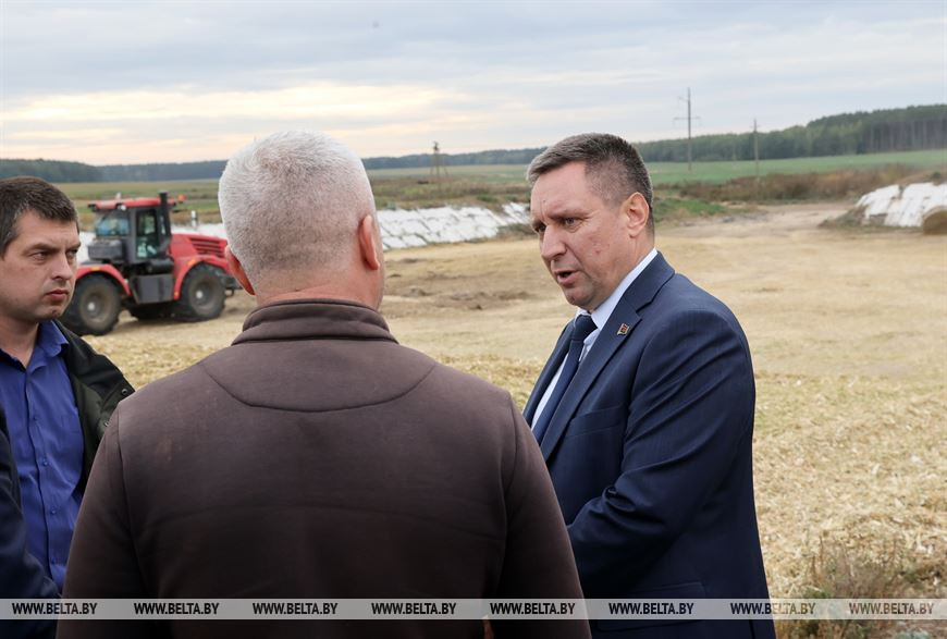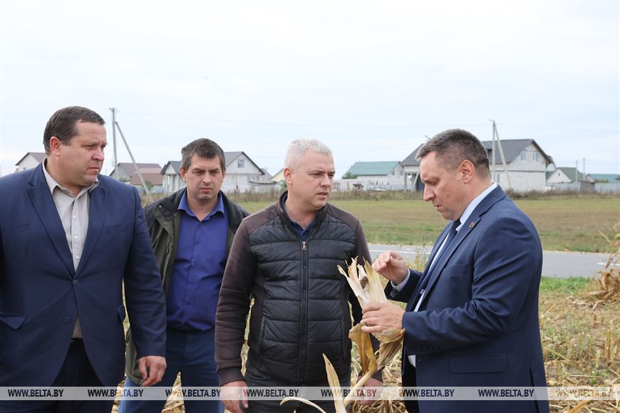 "Работа в хозяйстве организована на достаточном уровне и по заготовке кукурузы на силос, и по севу озимых зерновых. Необходимо еще доработать некоторые вопросы. Особенно наш Президент акцентирует внимание на том, чтобы мы мобилизовали усилия и максимально помогли сельскохозяйственным предприятиям в срок убрать все с полей. Здесь предстоит поработать с промышленными предприятиями, которые могут оказать поддержку агроблоку по уборке кукурузы на силос и зерно. Особенно актуален вопрос отвозки зеленой массы. И руководство районного исполкома должно держать руку на пульсе и перебрасывать технику на те хозяйства, где необходима помощь", - подчеркнул он.