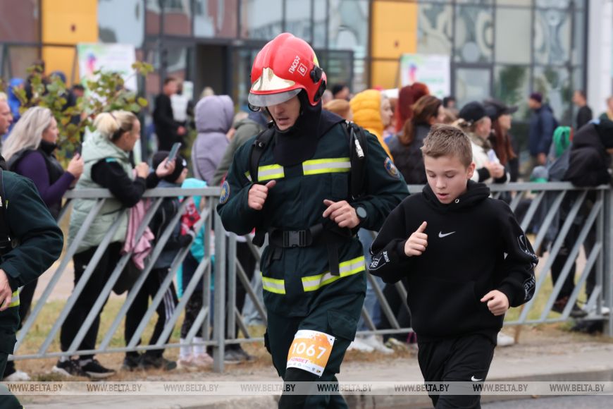 Кстати, старт на 3 км стал сегодня самым массовым. Решили попробовать свои силы и представители Бобруйского горрайотдела по ЧС Владимир Цирибко и Алексей Гормаш. На дистанции они отличались - спасатели были в боевках. Вес амуниции - 20 кг. "Это наша обычная жизнь, поэтому было легко. Именно в Могилеве бежим второй раз. Погодные условия хорошие, температура оптимальная. От боевки только жарко, - поделились они. - У нас постоянная физическая нагрузка, постоянные тренировки идут. Это наша работа".