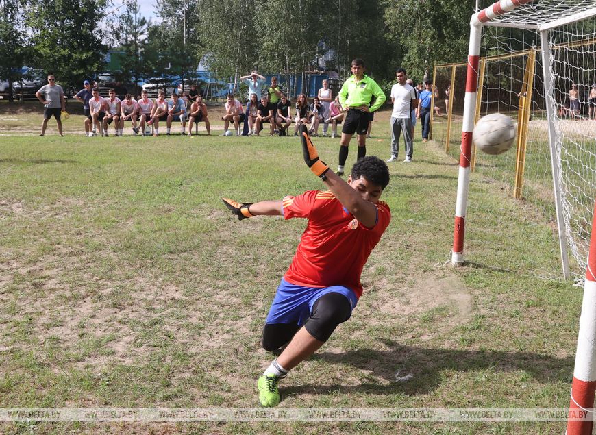 Маргарита Грищенко на слете уже в третий раз. Студентка пятого курса Гомельского государственного медицинского университета вдохновляется атмосферой палаточного лагеря. "Палатки, костры, общение - здесь все становятся семьей на некоторое время. "Жара" - настоящий праздник для студентов каждого вуза. Здесь можно проявить себя и в творчестве, и в спорте. Это еще и классный отдых на природе, где мы можем снова собраться вместе во время каникул. Наслаждаемся природой, красотой, находим новых друзей. Эти два дня еще больше нас сплачивают. А команда нашего медуниверситета сильна и в спортивной части, и в творческой - мы стараемся проявить себя во всех направлениях. Таким наш вуз был всегда", - с улыбкой заключает она.Нацелена на первенство и команда Белорусского государственного университета транспорта. Будущий энергетик Никита Левкович, студент второго курса, вместе с товарищами готов защищать честь вуза. На слете второй раз. "В прошлом году все очень понравилось. Были различные мероприятия и конкурсы днем, а вечером дискотека и отдых. Команда БелГУТа всегда сильна в футболе. В целом мы всегда в тройке лидеров и свои позиции не намерены отдавать. Распределены обязанности среди парней и девушек: кто-то отвечает за волейбол, кто-то за футбол, кто-то за конкурс метания яиц", - рассказал парень.