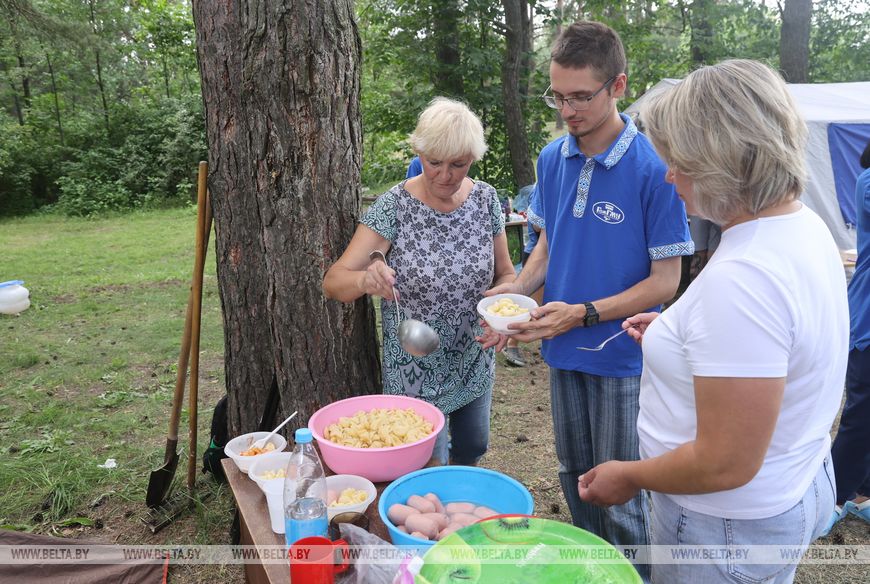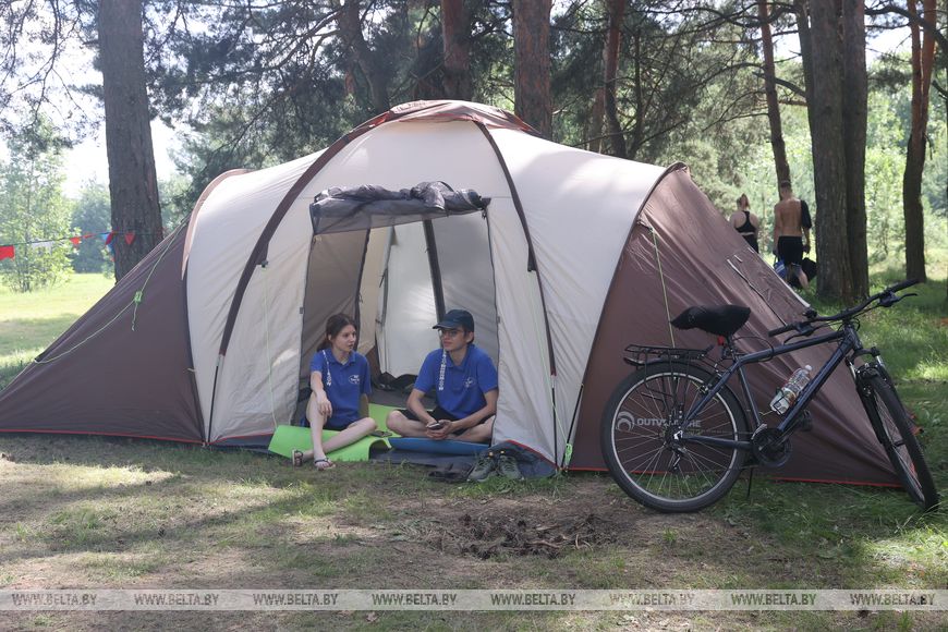 Большой палаточный лагерь разбит в лесном массиве вблизи реки Сож. С полудня здесь разместились команды, которые уже вступили в борьбу за первенство и готовы задать жару на состязательных площадках.
