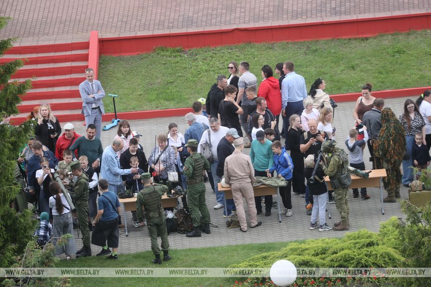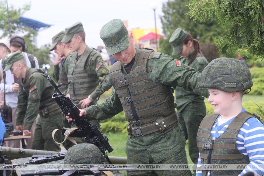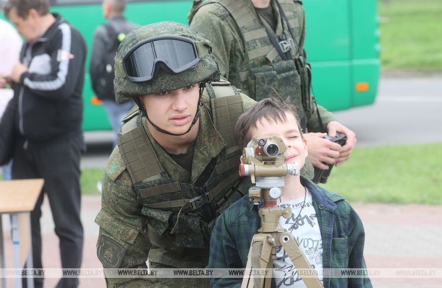 Останутся кадры на память в семейном альбоме Александра Ахраменко - он пришел на акцию вместе с внуком Макаром, которому восьмой год. "Я сам 28 лет служил в органах государственной безопасности. Сегодня пришли сюда посмотреть на технику, которая участвовала в параде. Интересно все. Для внука познавательно. Пусть растет защитником Отечества", - поделился житель Речицы.