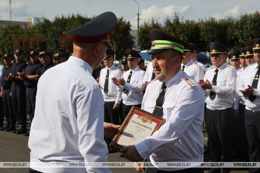 28 августа, Борисов /Корр. БЕЛТА/. Госавтоинспекция Борисовского РУВД совместно с ротой патрульно-постовой службы переехала в новое здание. В структуру объекта вошло межрайонное регистрационно-экзаменационное отделение. Событие стало поводом для праздника, на котором не обошлось без подарков, передает корреспондент БЕЛТА.