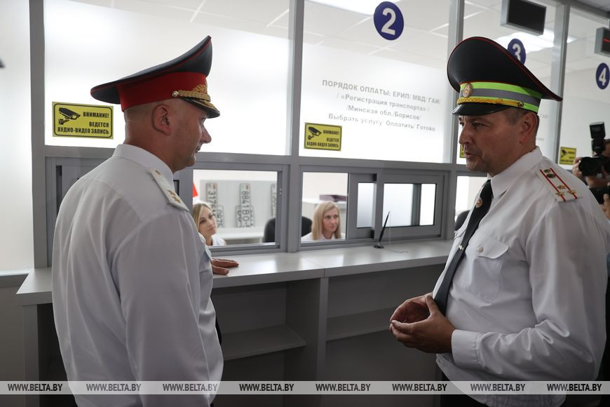 После символического открытия здания почетные гости мероприятия познакомились с условиями работы местного подразделения ГАИ, посетили экзаменационно-регистрационный блок, где граждане смогут поставить на учет транспортное средство, получить номер на машину, а также при необходимости сдать экзамен на получение водительского удостоверения. Экскурсию по новому объекту провел начальник Борисовского РУВД Сергей Соловей.