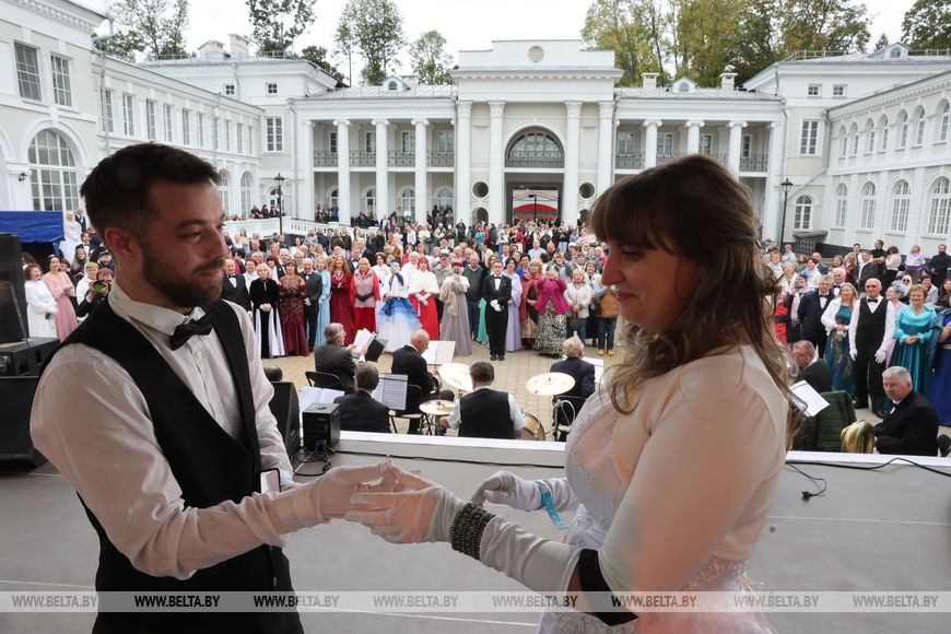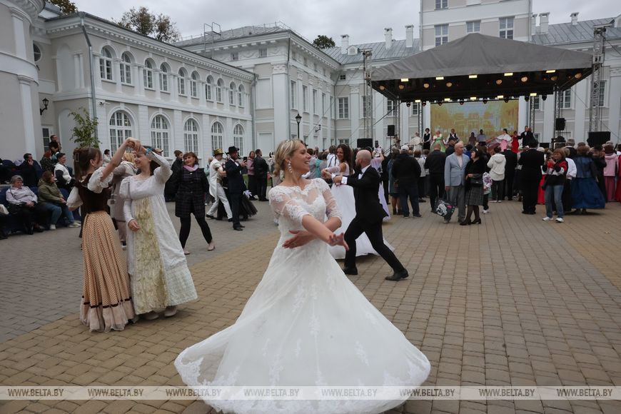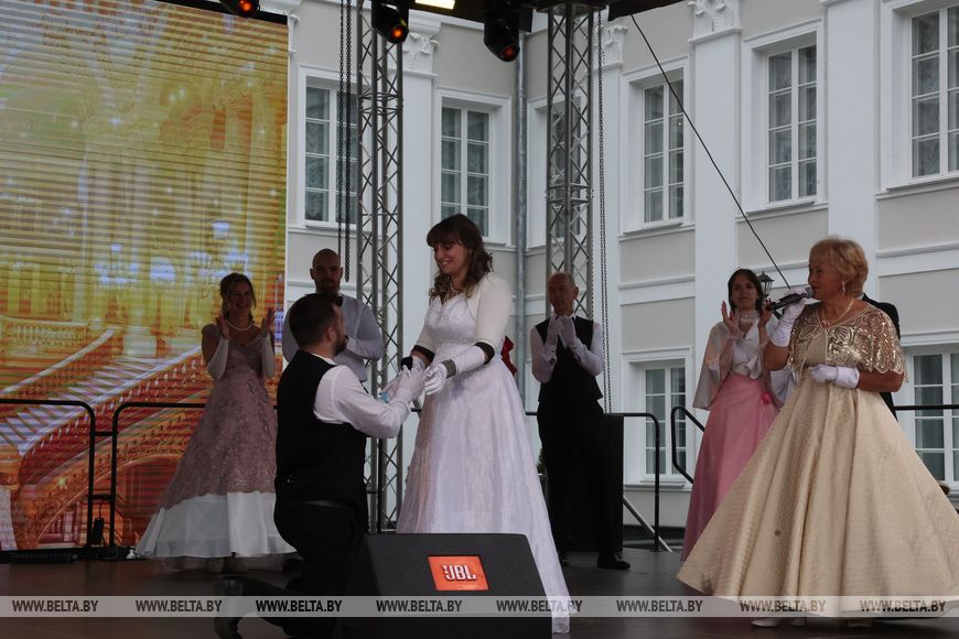 Одним из трогательных моментов бала стало предложение руки и сердца прямо во время танцев. Такой красивый и важный момент гости и участники праздника разделили с гомельчанами Александром Виноградским и Ириной Малащук. Молодая пара совсем недавно начала заниматься классическими танцами в клубе "Вдохновение". И выступление на фестивале стало их первым выездом за пределы родного города. И теперь фест в Жиличах станет для них по-особенному важным.