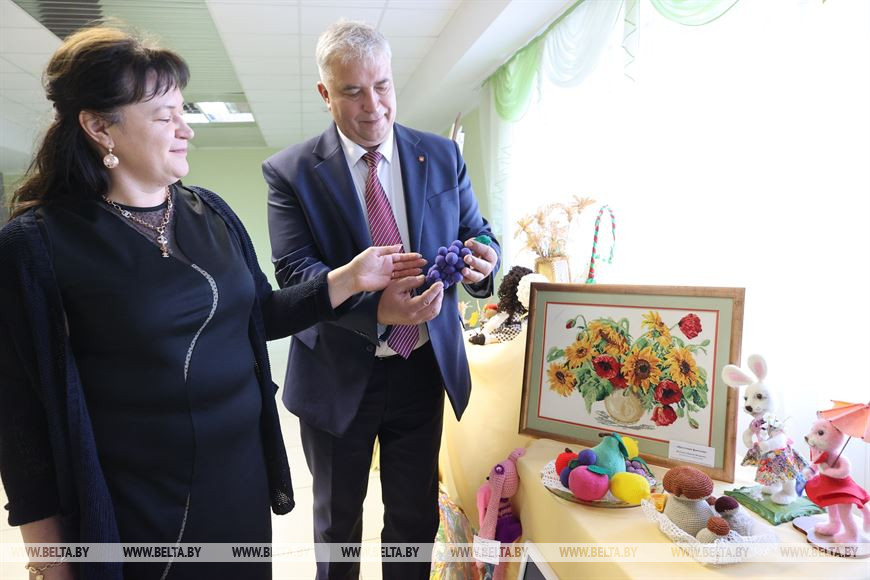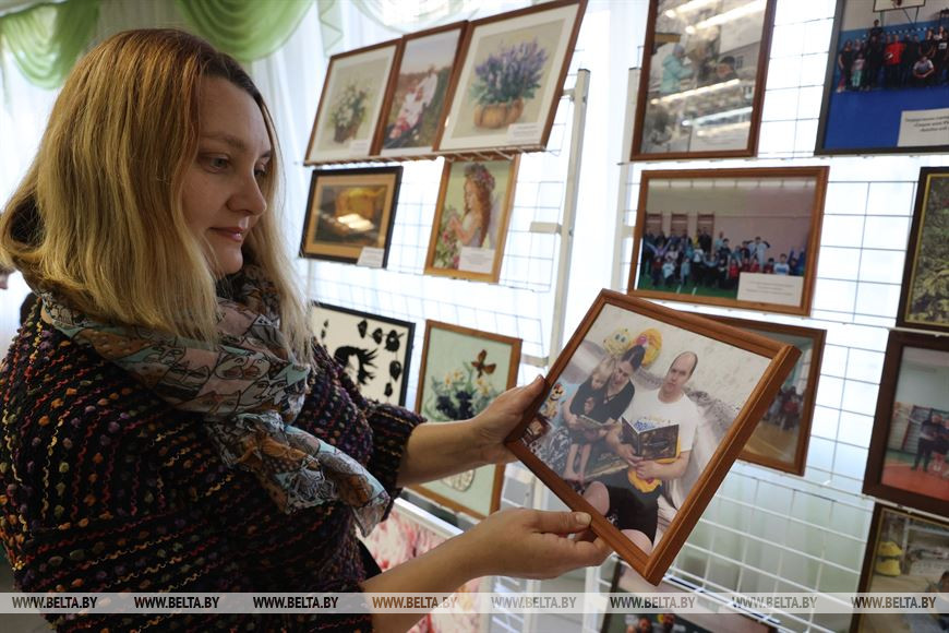 13 октября, Полоцк /Алеся Пушнякова - БЕЛТА/. Семьи, приехавшие в Полоцк на встречу с председателем Совета Республики Натальей Кочановой и митрополитом Минским и Заславским Вениамином, Патриаршим Экзархом всея Беларуси, побывали на выставке семейных работ в Центре культуры "Полоцк", передает корреспондент БЕЛТА.