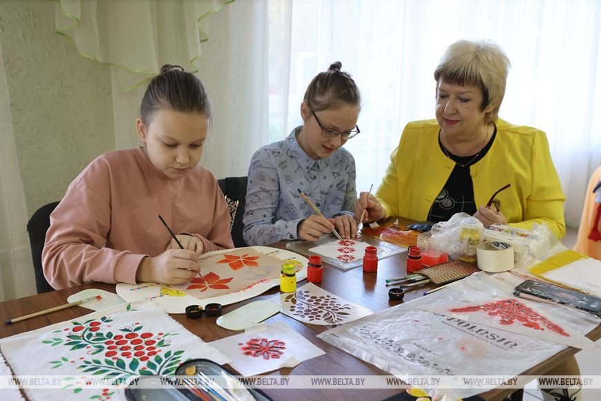 Также для гостей организовали мастер-класс по изготовлению открыток, которые можно было сделать не только для мам, но и бабушек, а также мини-урок росписи по ткани. Изготовленные своими руками сувениры можно было забрать с собой, и гости с удовольствием оставили себе на память теплые и душевные поделки. Во многих работах центральным героем был аист как символ Беларуси и семейного счастья.-0-