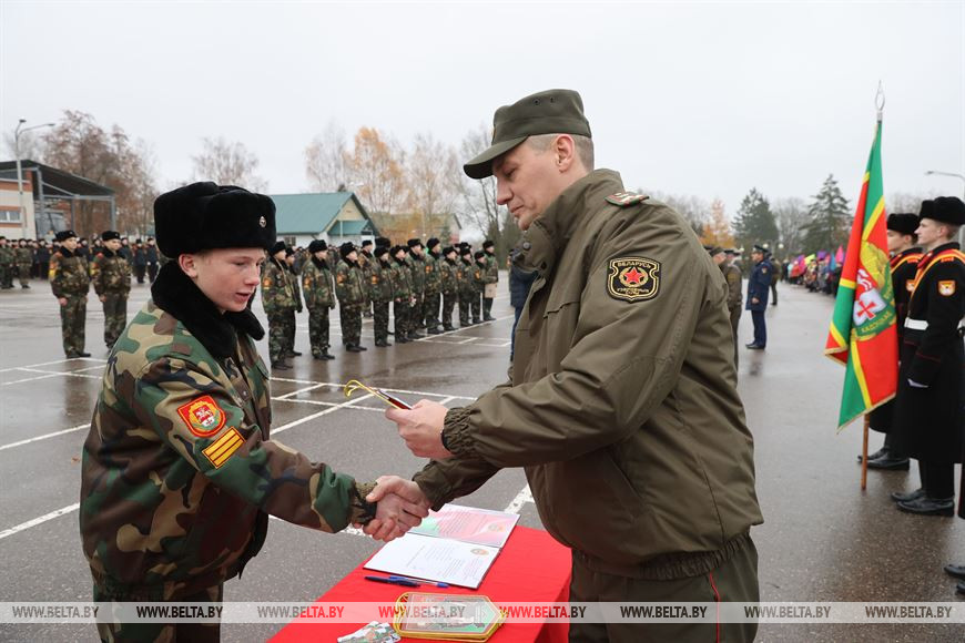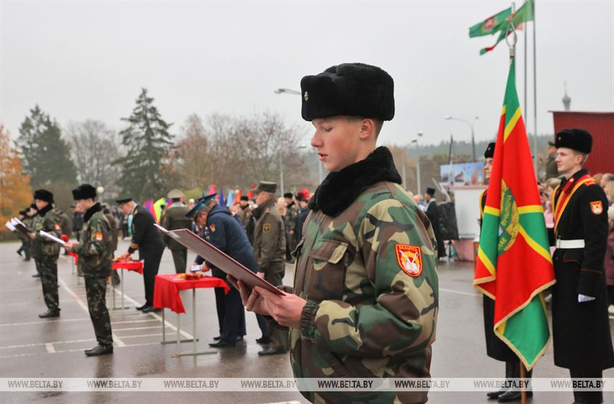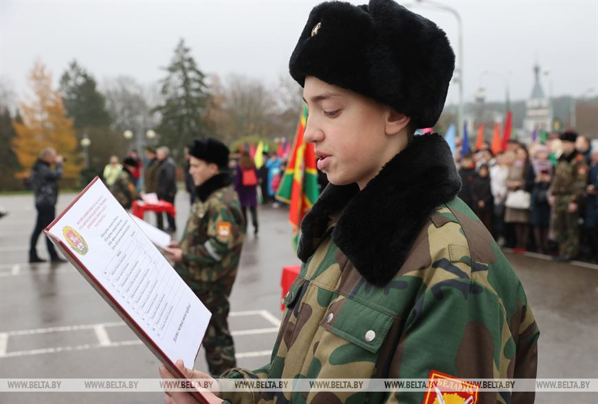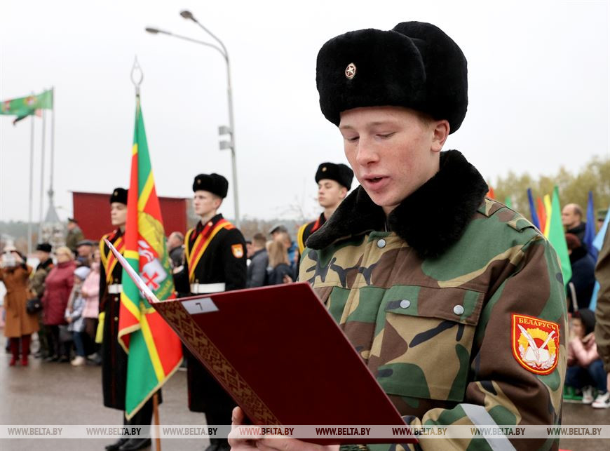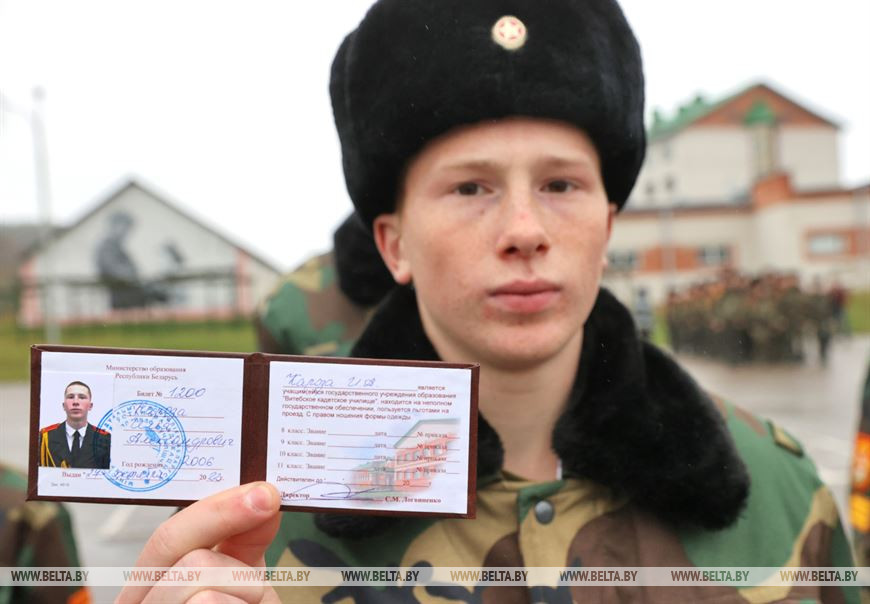 29 октября, Витебский район /Алеся Пушнякова - БЕЛТА/. Сегодня Илья Кароза - латвийский школьник, который во время "Славянского базара в Витебске" взял интервью у Президента Беларуси Александра Лукашенко и из-за гонений на родине переехал в нашу страну, - принес клятву кадета в числе новобранцев Витебского кадетского училища, передает корреспондент БЕЛТА.