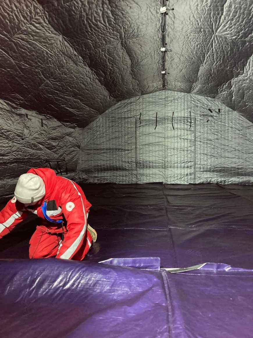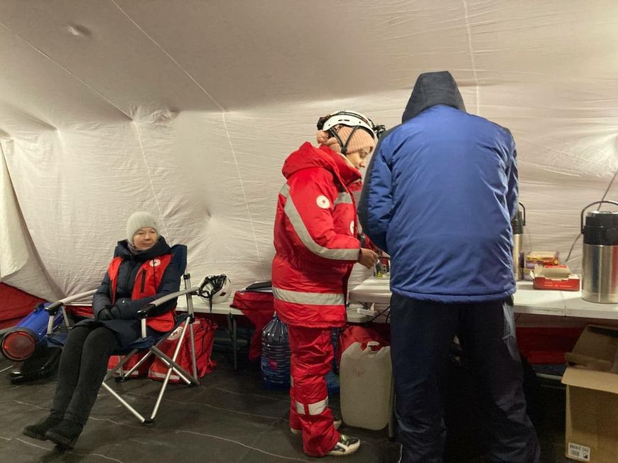 Как уточняется в сообщении, пока завершается установка модуля на 40 кв.м, волонтеры БОКК согревают людей в палатке. Граждан Украины угощают чаем, для малышей - фруктовое пюре.