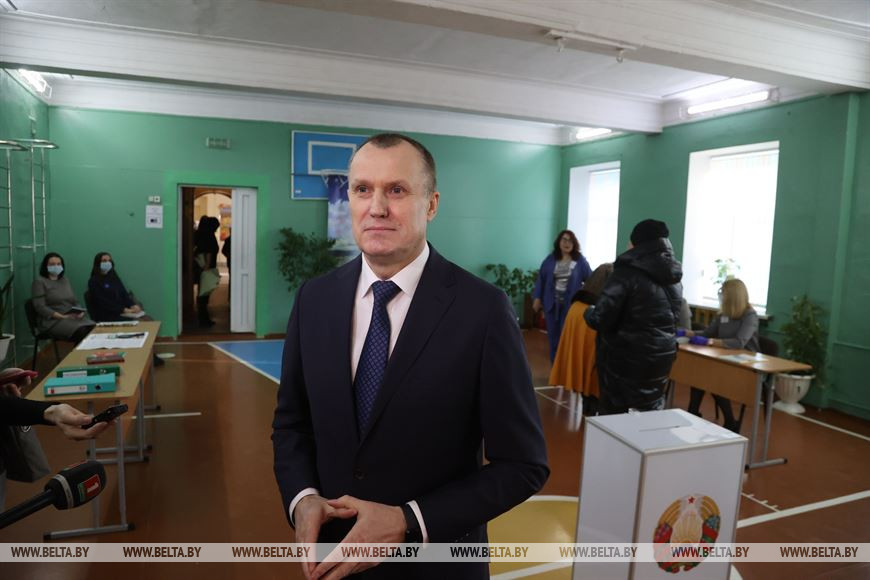 22 февраля, Могилев /Корр. БЕЛТА/. Председатель областного исполнительного комитета Анатолий Исаченко дал старт досрочному голосованию в Могилевской области. На избирательный участок для голосования №57, расположенный в старейшей в Могилеве средней школе №1, он пришел первым, передает корреспондент БЕЛТА.