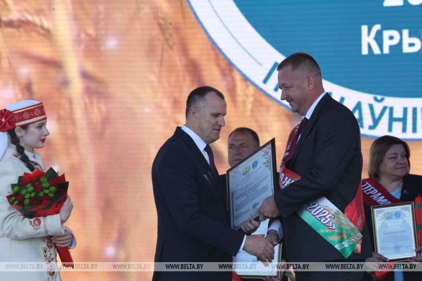 Как отметил председатель облисполкома, уборочная кампания текущего года была непростая. "Но скажу, что вы с честью с ней справились. В нынешнем году доля Могилевского региона в общереспубликанском каравае составила 14%. Намолочено порядка 1,3 млн т, что на 42% больше, чем в 2024-м. Это хороший результат, но мы достойны большего, - сказал он. - И это не просто цифры. За ними стоит ежедневная, кропотливая работа. Испокон веков белорусы работали толокой. Если нужно построить дом, посадить картошку, убрать урожай, то только вместе. И в этой уборочной по традиции объединились все: аграрии, силовики, спасатели и работники предприятий. Несмотря на сложные погодные условия, благодаря профессионализму, высокой дисциплине и хозяйскому подходу хлеборобы Могилевщины показали, что могут добиваться высокого результата".Труд комбайнеров и водителей заслуживает особых слов благодарности. Как отметил Анатолий Исаченко, 301 экипаж в регионе намолотил свыше 1 тыс. т, а 4 экипажа перешагнули рубеж в 5 тыс. т. 202 водителя перевезли более 1 тыс. т зерна, 4 преодолели планку в 5 тыс. т.