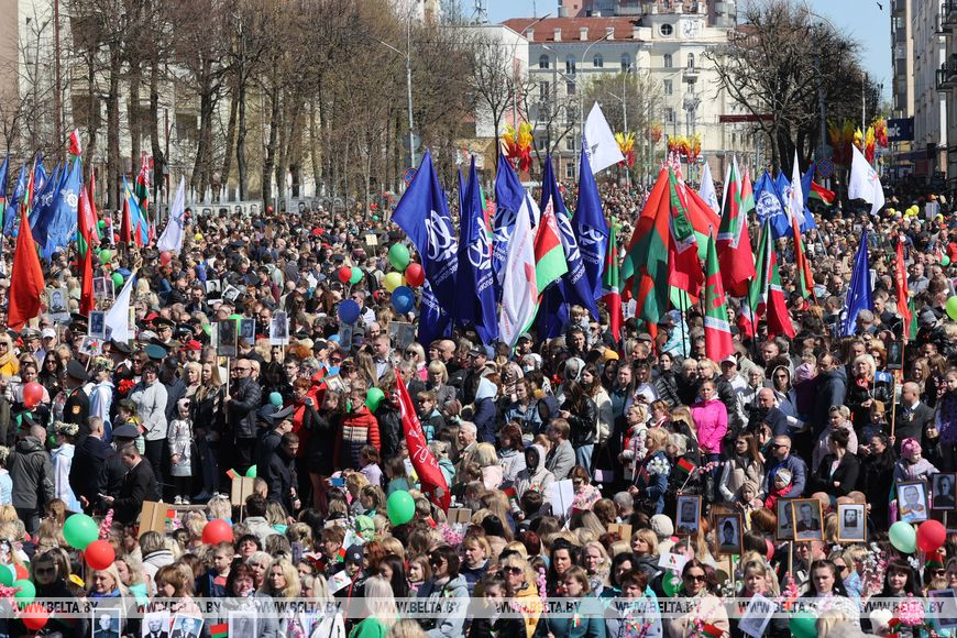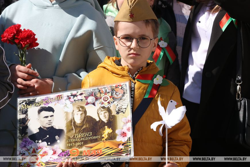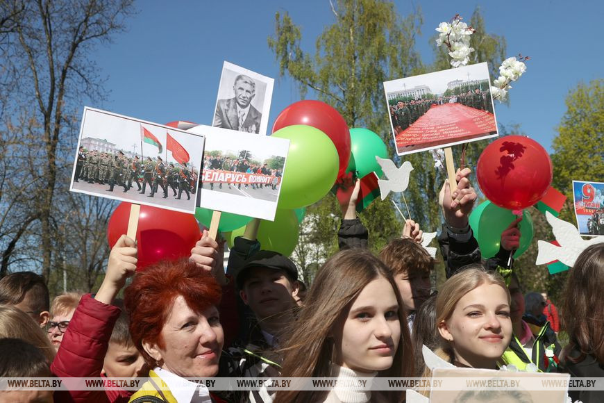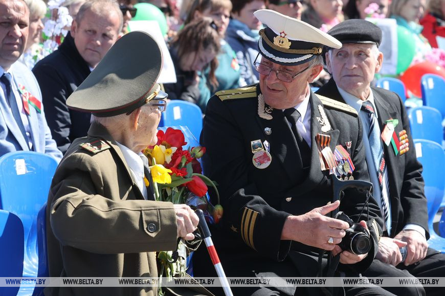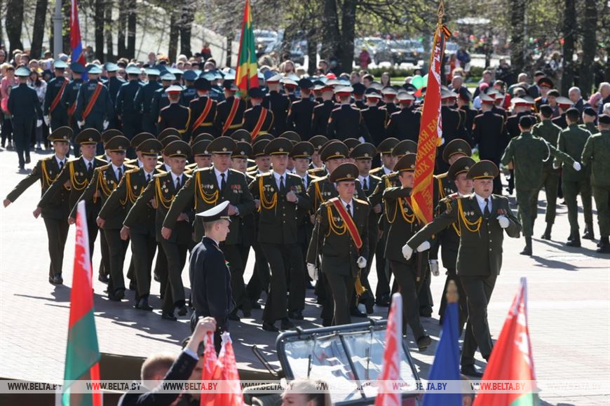 Череду празднований Дня Победы в Могилев открыли торжественный марш воинских частей и шествие-парад "Победа в сердцах поколений" с участием ветеранов Великой Отечественной войны, руководства области и города, представителей трудовых коллективов, молодежи и общественности. Колонна проследовала почти 2 км по ул. Первомайской - от пл. Ленина до пл. Славы, где уже начинаются митинг с возложением венков и цветов к Вечному огню, праздничный концерт "Вечная слава героям". Мероприятие, посвященное 77-й годовщине Победы в Великой Отечественной войне, собрало здесь около 5 тыс. человек.-0-