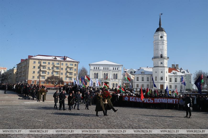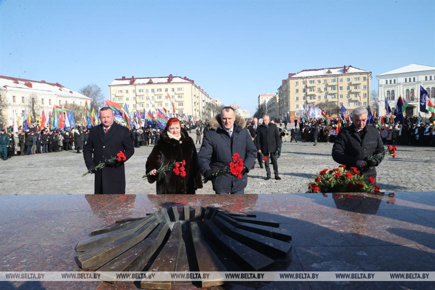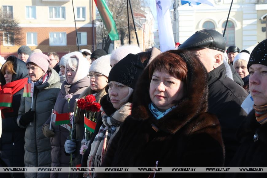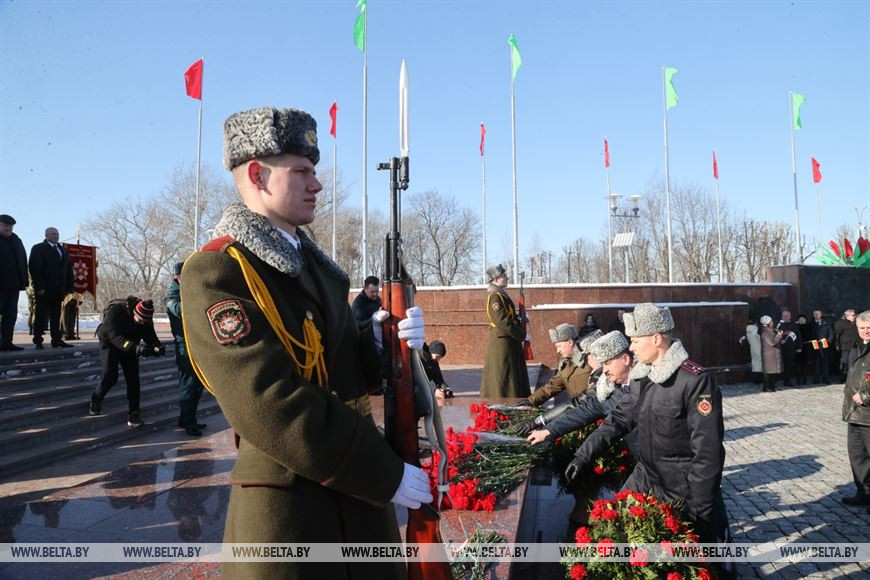 Торжество собрало на площади Славы почти 2 тыс. человек. В возложении цветов и венков к Вечному огню приняли участие руководство области и города, ветераны войны и Вооруженных Сил, представителей правоохранительных органов, трудовых коллективов и общественности, военнослужащие и молодежь. Дань уважения и памяти тем, кто стоит на страже мира и спокойствия страны, также отдали помощник Президента - инспектор по Могилевской области Леонид Мартынюк и военный комиссар региона Александр Горошкин.