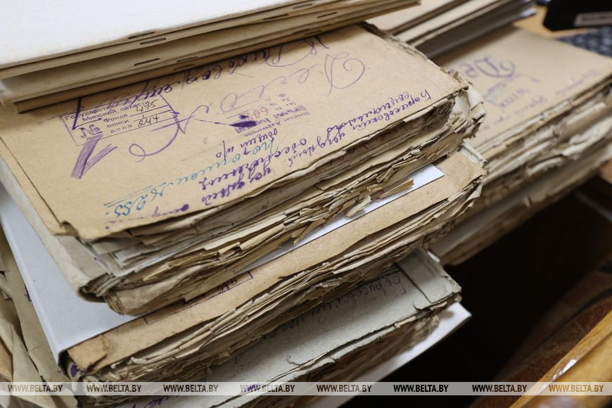 В архиве несколько таких хранилищ, в том числе предназначенных для документов госорганов, личных фондов известных деятелей, участников Великой Отечественной войны. "Мы храним документы с 1917 года. Но формировались дела очень давно. Потому, листая папки, можно встретить и напоминания о более раннем периоде. Например, когда готовили небольшую выставку аттестатов к выпускным, находили документы, датированные 1890-1912 годами", - пояснила Ирина Лукашевич.