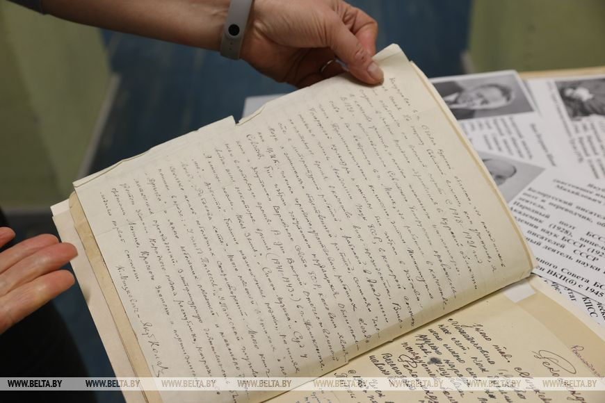 Она предлагает познакомиться с небольшой экспозицией наиболее ценных документов. В их числе - личное дело о приеме в партию классика белорусской литературы Якуба Коласа. В папке есть автобиография, написанная лично писателем.