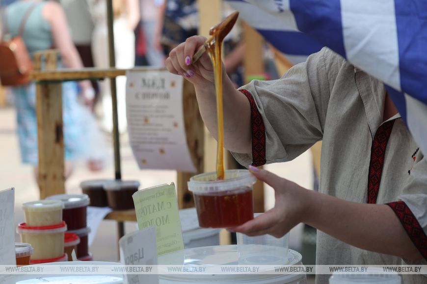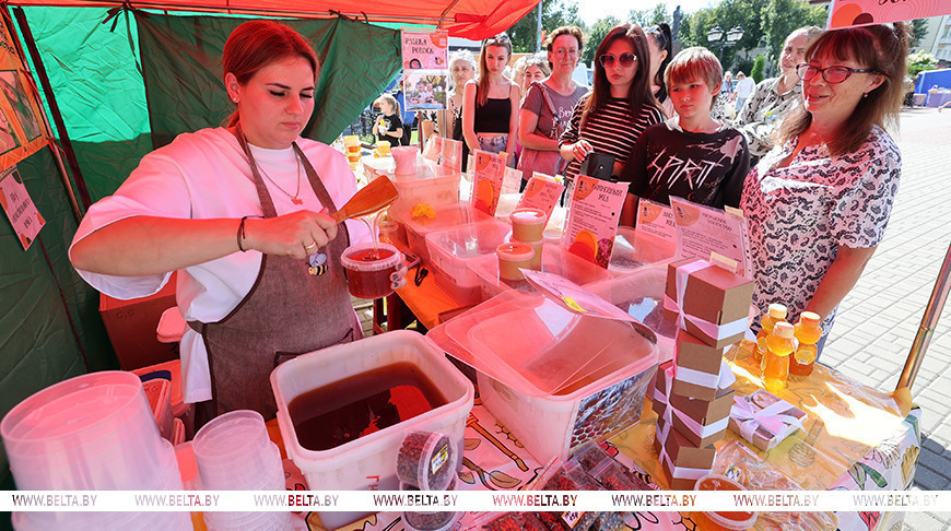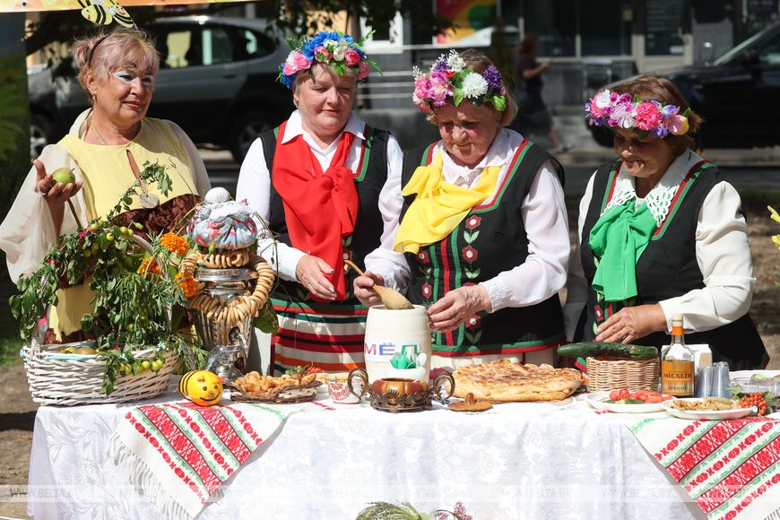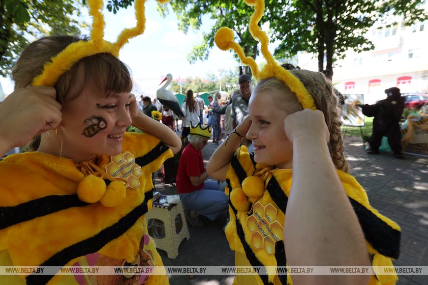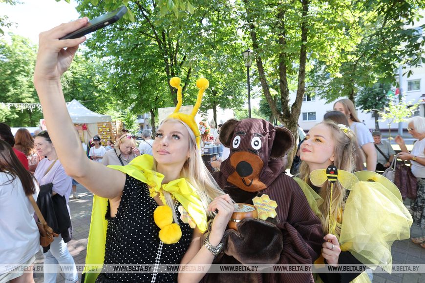 В сквере на проспекте Франциска Скорины развернулись подворья и палатки. Сельсоветы привезли на сладкий праздник мед и творческие визитки. "Мы отвечаем здесь за самое главное - настроение. Каждый год сюда приезжаем и устраиваем представления, "каб усім было радасна і соладка". Поднимаем настрой жителям и гостям города. Привезли мы не только песни и танцы, но и вкусные угощения - пироги, которые пекли сами. Посмотрите, какой праздник, сколько меда! Хоть погода в этом году не радовала совсем - и зимы толком не было, и лета, а пчелки молодцы, такие же трудяги, как и мы, столько меда дали и всех порадовали", - рассказали участницы народного фольклорного ансамбля "Близнянка" Сельницкого сельского дома культуры.