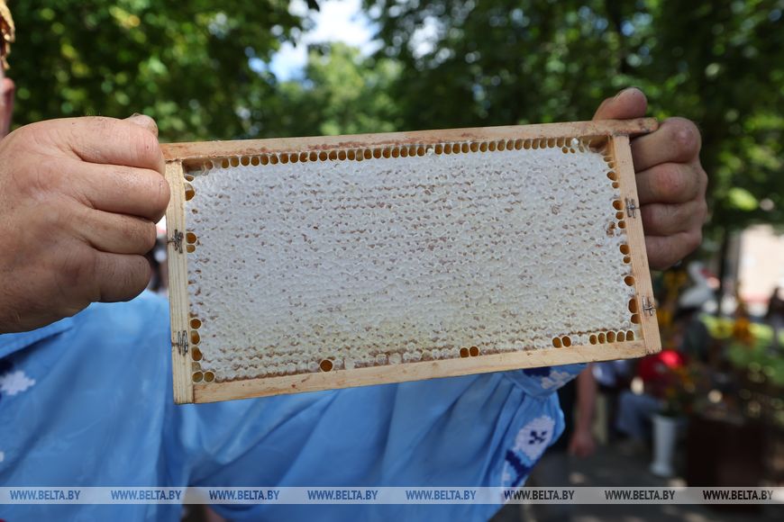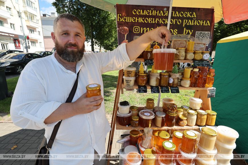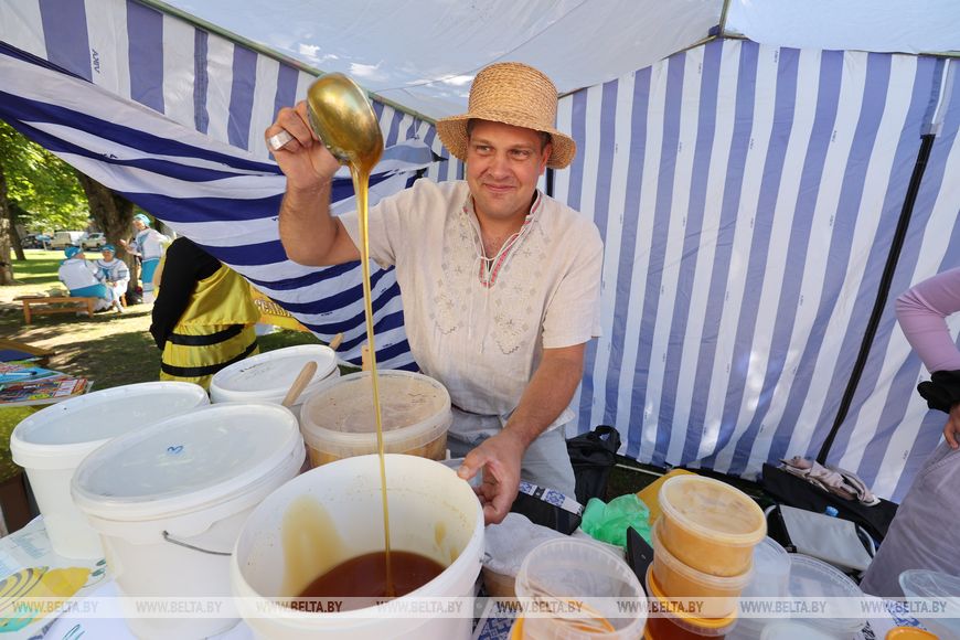 Опытные пасечники на празднике в Полоцке знают, что покупателей на мед слетается много, даже приманивать не нужно. Дегустации, байки, шутки-прибаутки, а главное - исчерпывающие рассказы о пользе такого дара природы добавляют атмосферности.