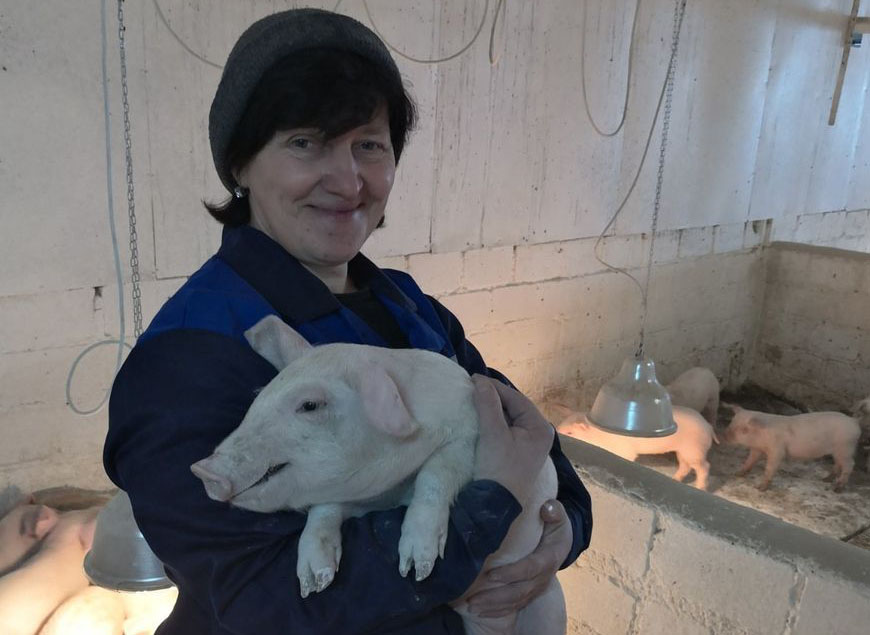Лучше других за малышами – от месяца до четырех – ухаживает свинарка Алина Лиходиевская. Не отстают и другие работники свинофермы.