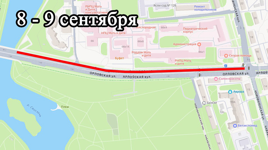 В связи с заменой асфальтобетонного покрытия на улице Орловской будут проводиться работы без ограничения движения транспорта. Так, на участке от развязки с пр. Победителей до съезда с ул. Тимирязева на пр. Пушкина в обоих направлениях с 5 по 10 сентября ежедневно с 20.00 до 7.00 запланировано фрезерование существующего и устройство нижних слоев нового покрытия. С 20.00 8 сентября до 6.30 9 сентября по четной стороне ул. Орловской на участке от ул. Нововиленской до моста через реку Свислочь (в 3-й и 4-й полосах для движения) запланировано фрезерование существующего, а также устройство нижних и верхнего слоев нового асфальтобетонного покрытия. Кроме того, по съезду с четной стороны ул. Орловской на четную сторону пр. Победителей с 23.00 9 сентября до 0.30 10 сентября будет проводиться фрезерование существующего покрытия.