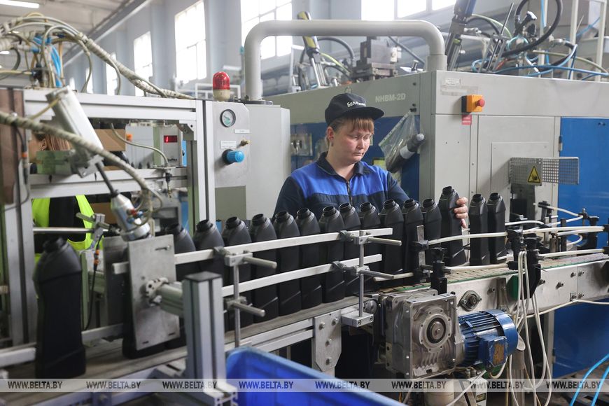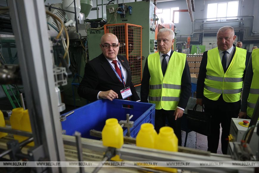 Участники заседания посетили СООО "Бел-Пласт Интернешнл". Как рассказал его руководитель Анатолий Великин, предприятие работает с 1999 года и является белорусским лидером по серийному производству широкого спектра пластмассовой упаковки и укупорочных средств. В ассортименте предприятия более 300 наименований бутылок, банок, канистр, крышек для бытовой химии, парфюмерно-косметической продукции, пищевых продуктов и лекарственных средств. Продукция предприятия реализуется на рынках Беларуси (и процент потребления внутри страны, по словам руководителя предприятия, растет), России (в 26 регионах), Казахстана, Узбекистана.